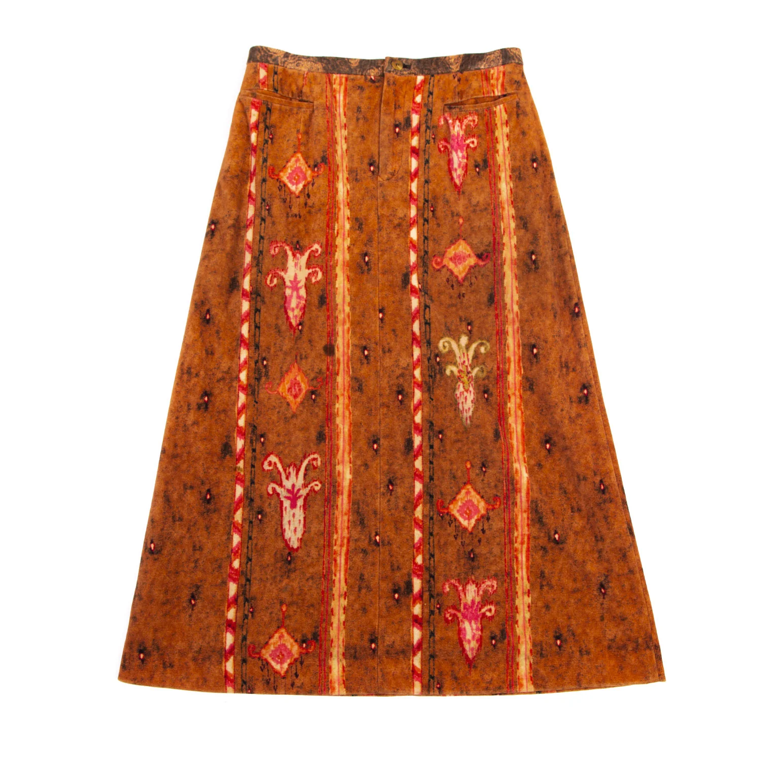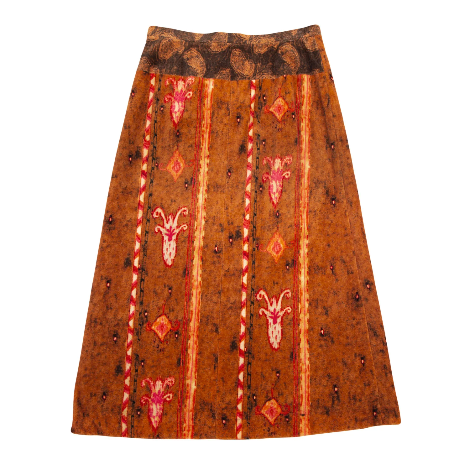 イッセイミヤケ ハートISSEY MIYAKE HaaT ネイティブストライプベロアスカート 茶1