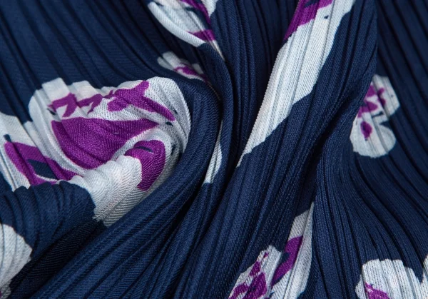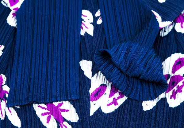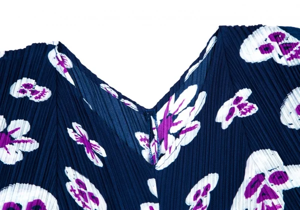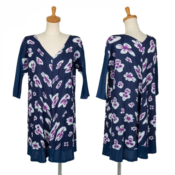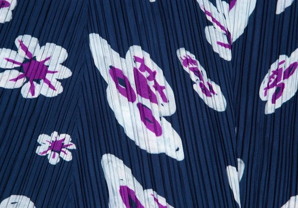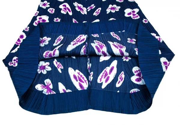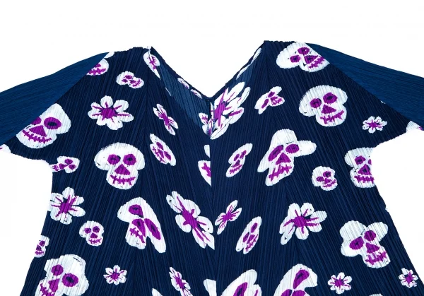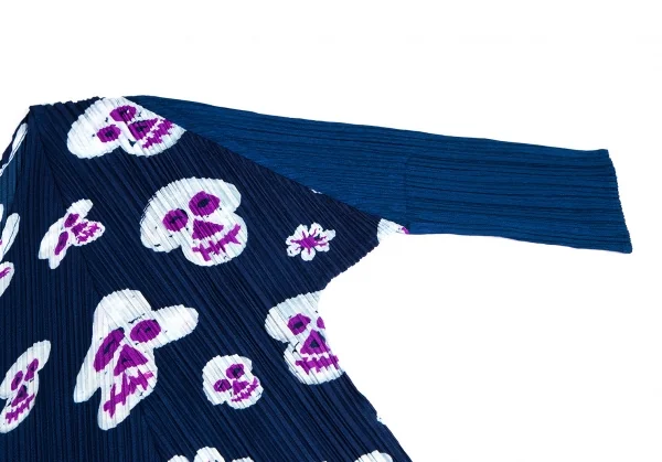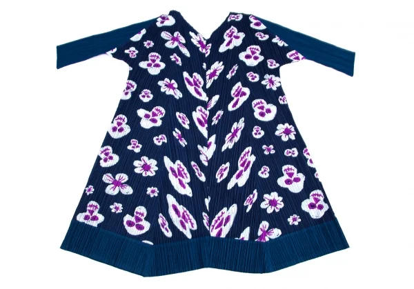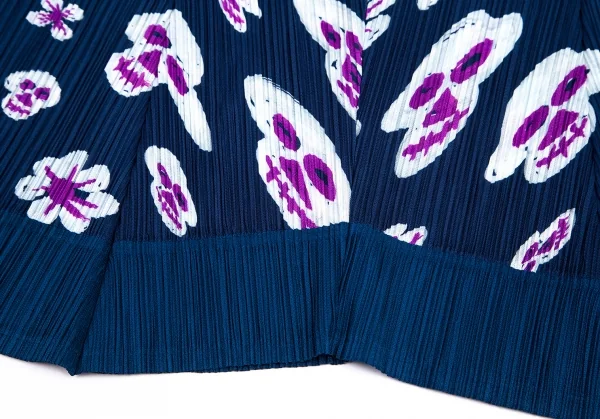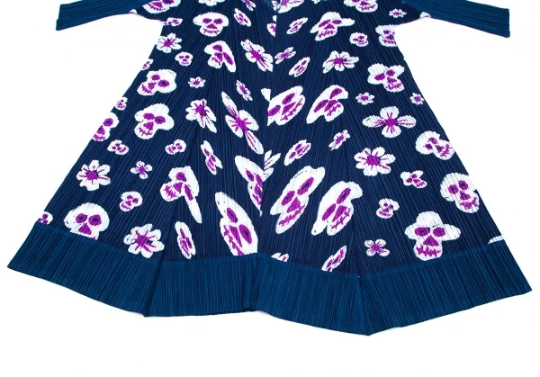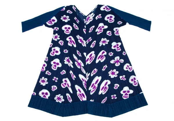 プリーツプリーズPLEATS PLEASE スカルフラワープリントワンピース 紺3