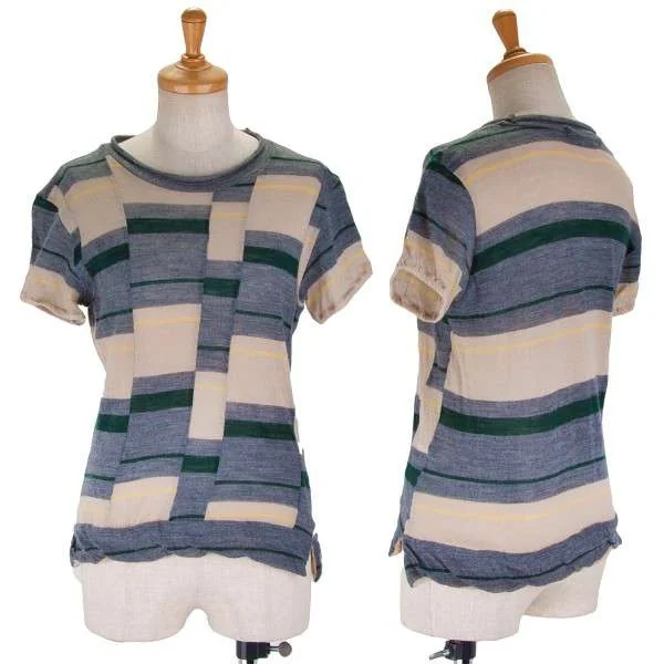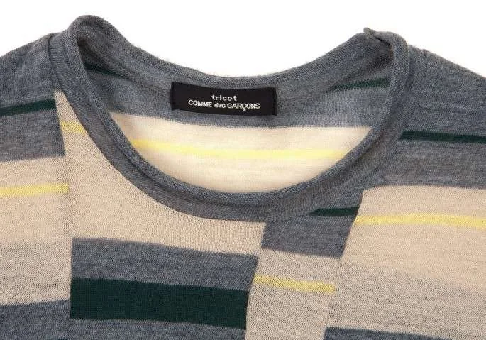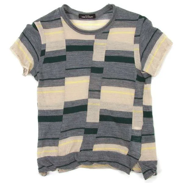 トリコ コムデギャルソンtricot COMME des GARCONS ボーダーパッチワークウールカットソー 杢グレーM位