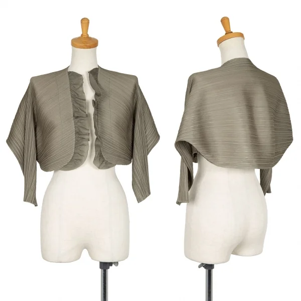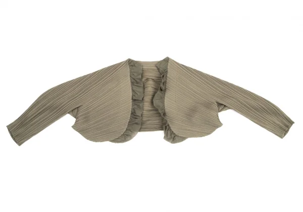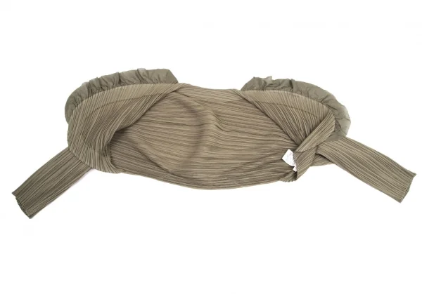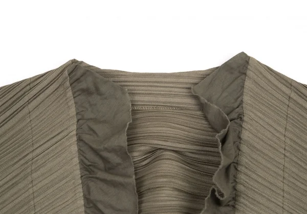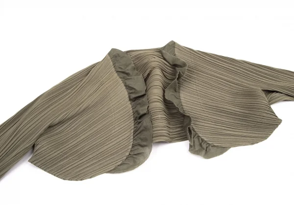 プリーツプリーズPLEATS PLEASE フリル切替ショートボレロカーディガン カーキ3