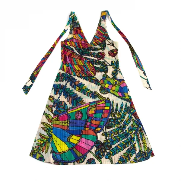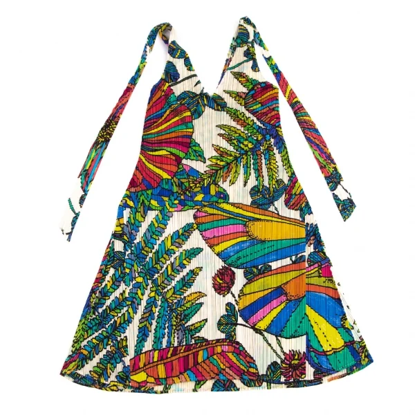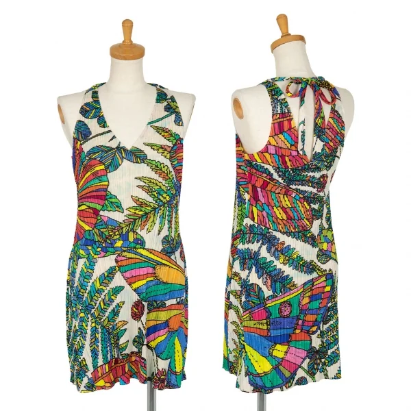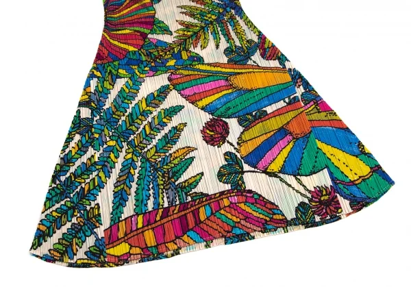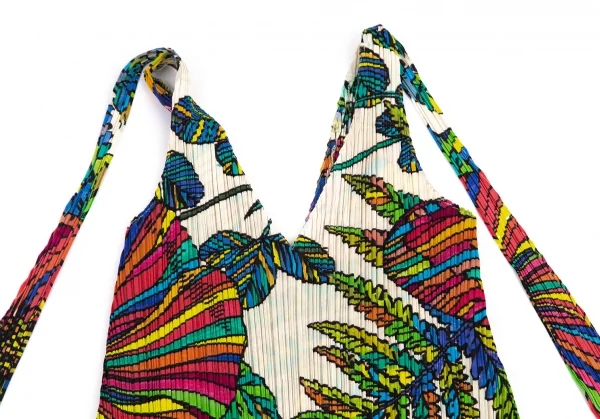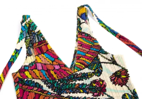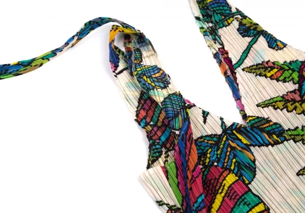 プリーツプリーズPLEATS PLEASE カラフルボタニカルプリントノースリーブチュニック ベージュ4