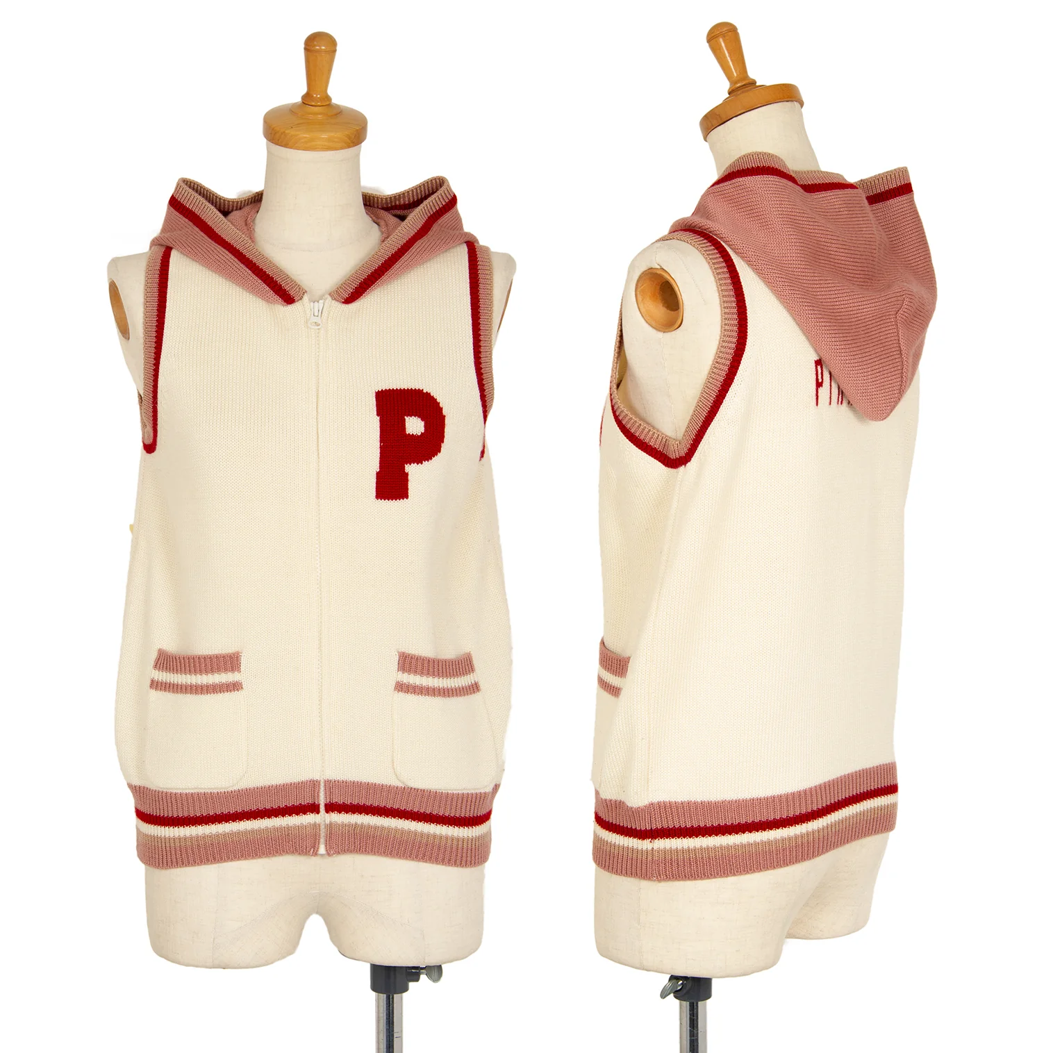 ピンクハウスPINK HOUSE レタードニットノースリーブパーカー クリームL