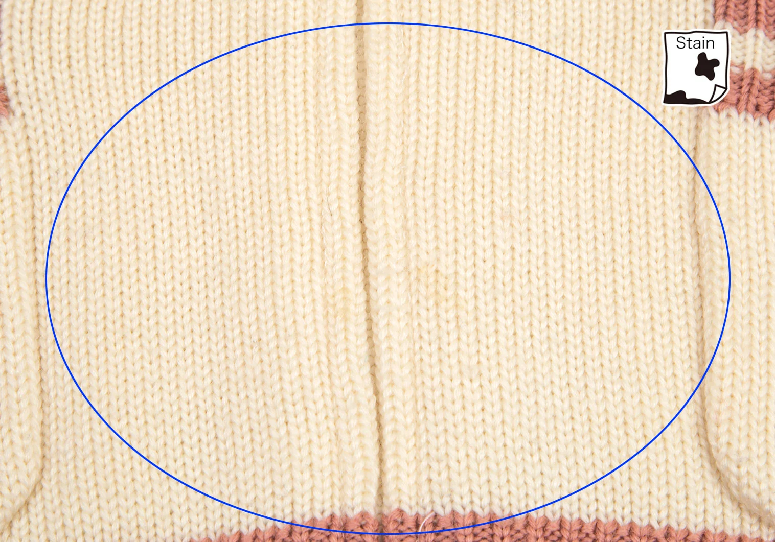 身頃にシミ、後ろに引っ掛けがあります(写真参照)。その他に目立ったシミ、汚れ、ほつれ等なくいい状態です。クリーニング済み