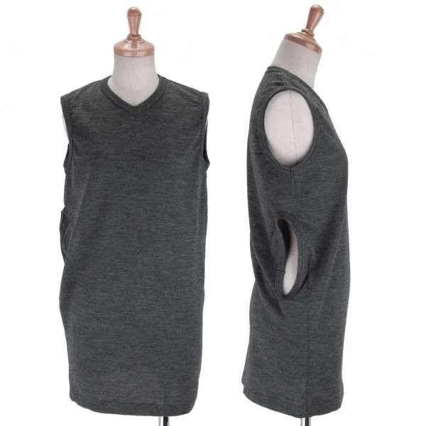 ローブデシャンブレ コムデギャルソンrobe de chambre Comme des Garcons 2wayデザインノースリーブウールカットソー 杢グレーS位