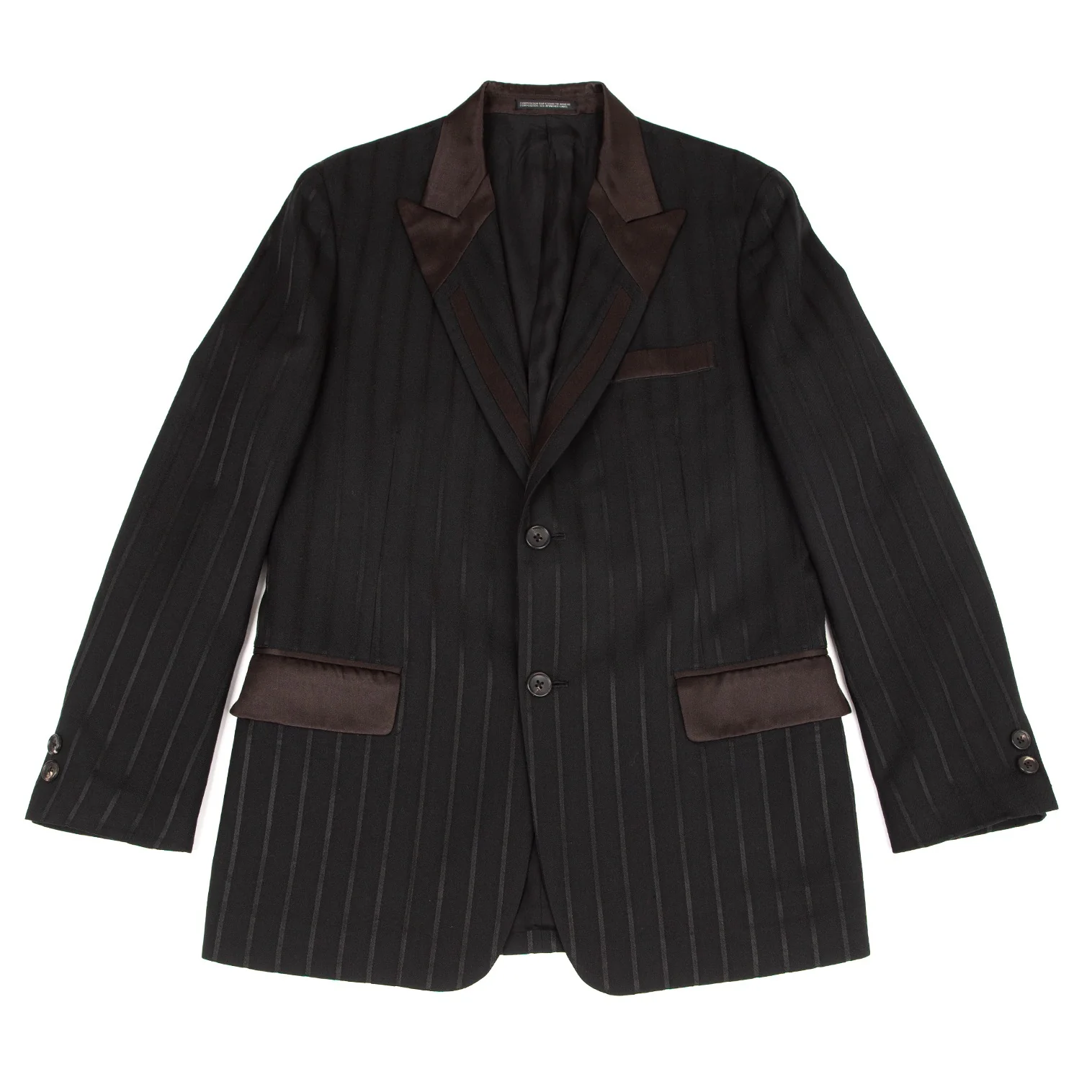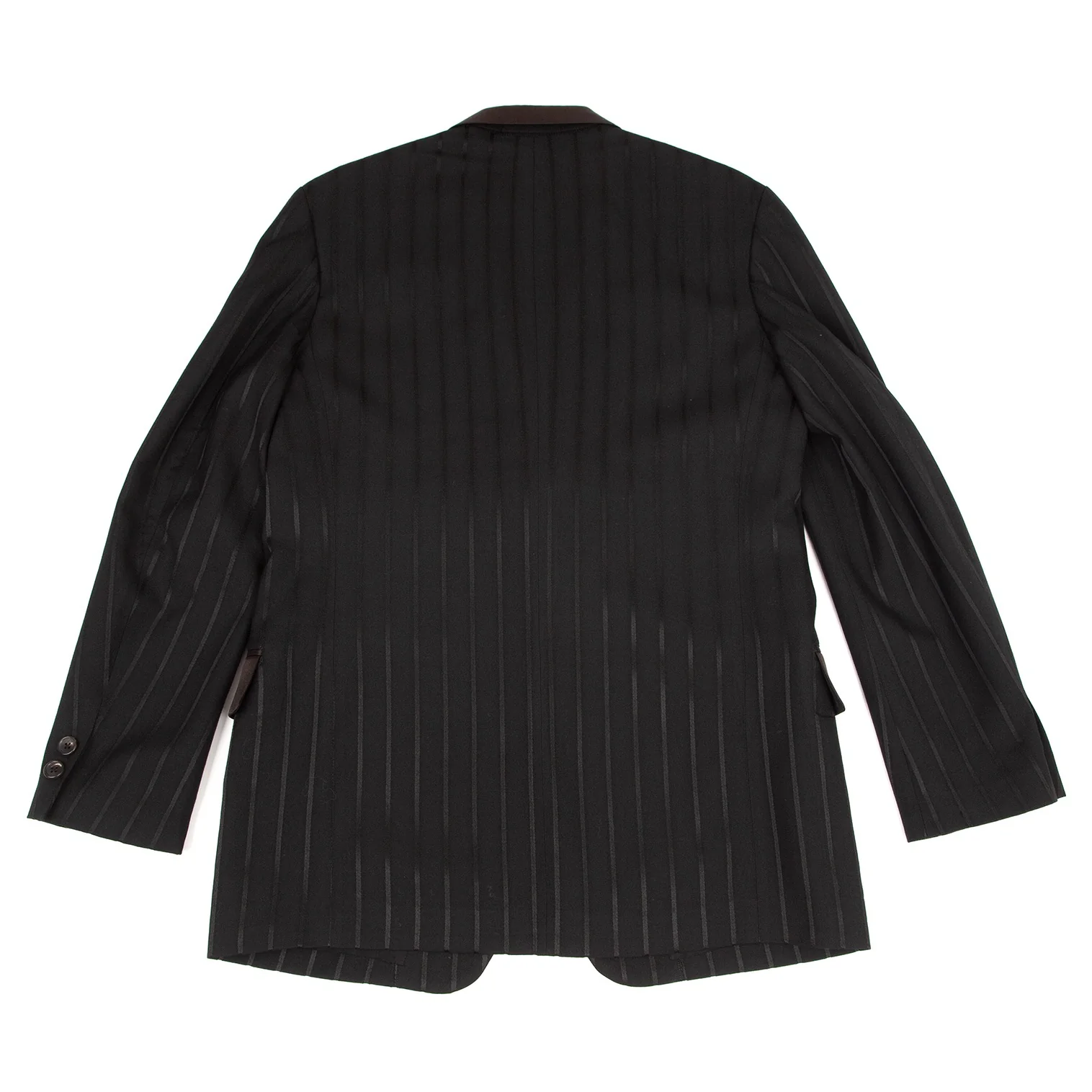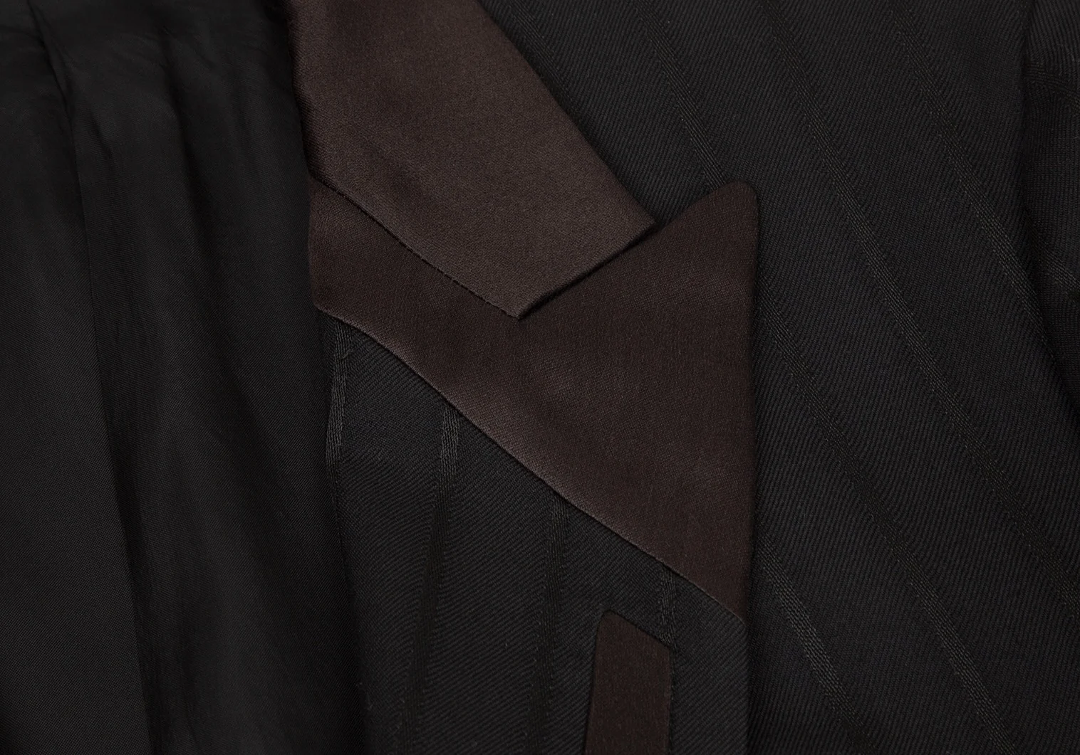 ヨウジヤマモト プールオムYohji Yamamoto POUR HOMME シルクサテン切替ストライプジャケット 黒2