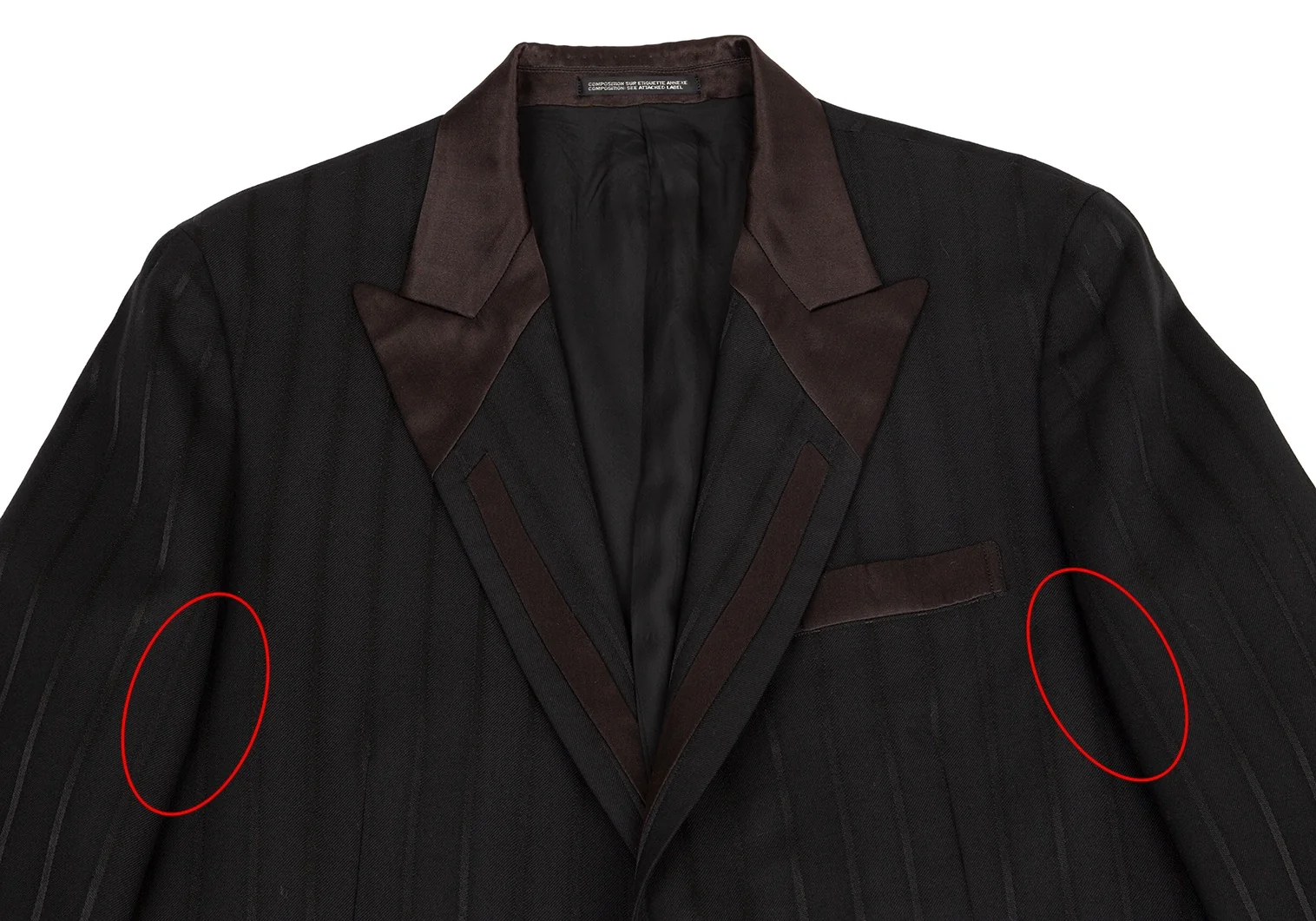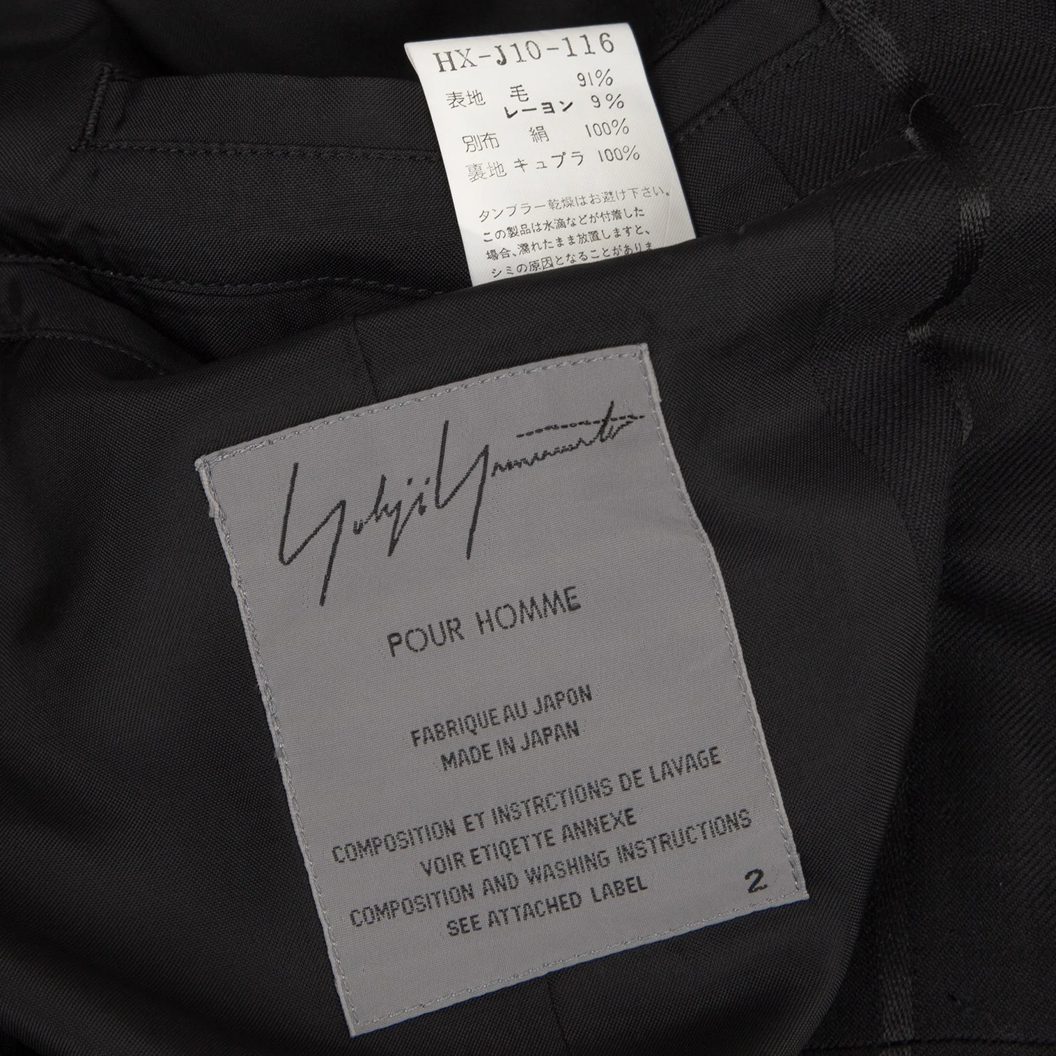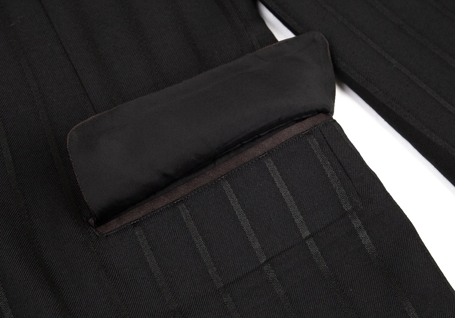 ヨウジヤマモト プールオムYohji Yamamoto POUR HOMME シルクサテン切替ストライプジャケット 黒2