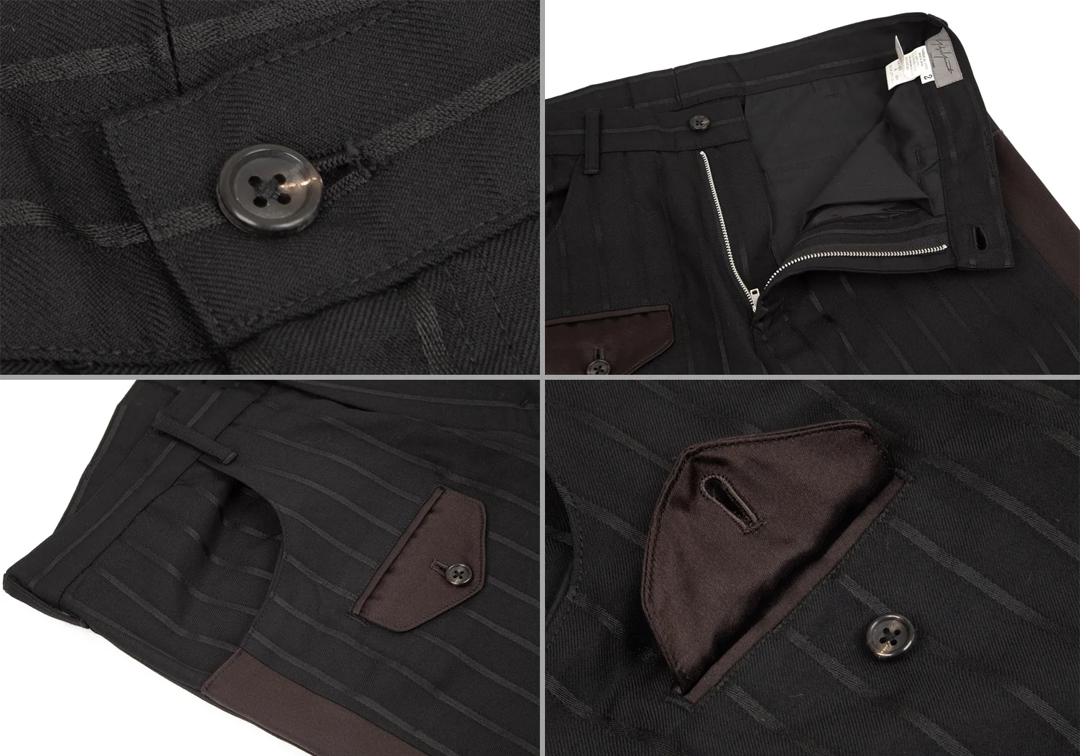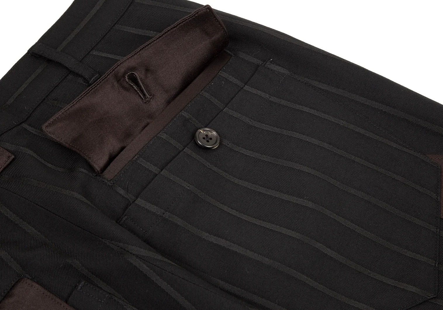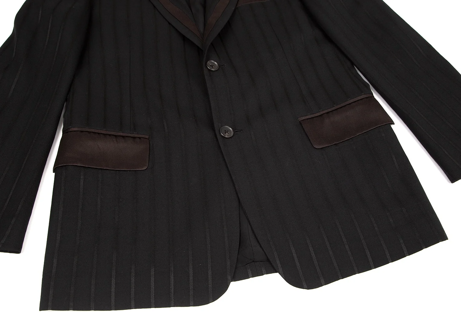 ヨウジヤマモト プールオムYohji Yamamoto POUR HOMME シルクサテン切替ストライプセットアップスーツ 黒2