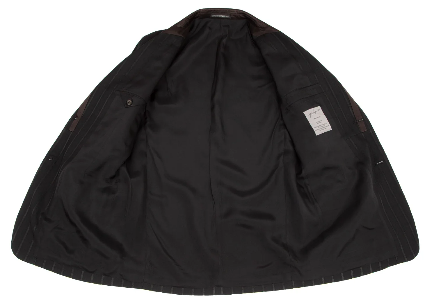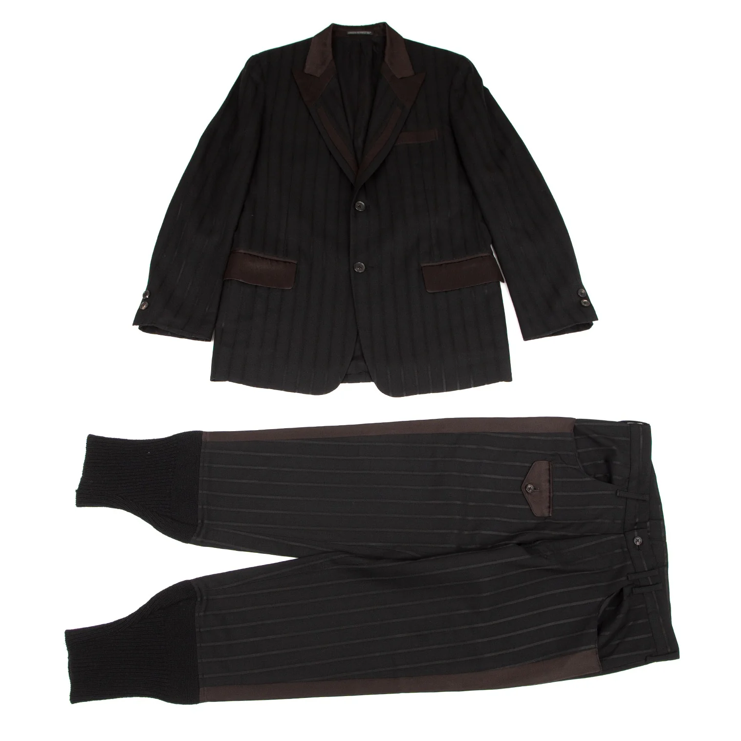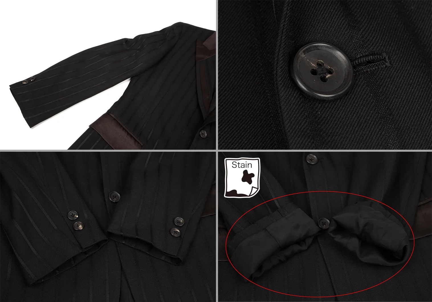 ヨウジヤマモト プールオムYohji Yamamoto POUR HOMME シルクサテン切替ストライプセットアップスーツ 黒2