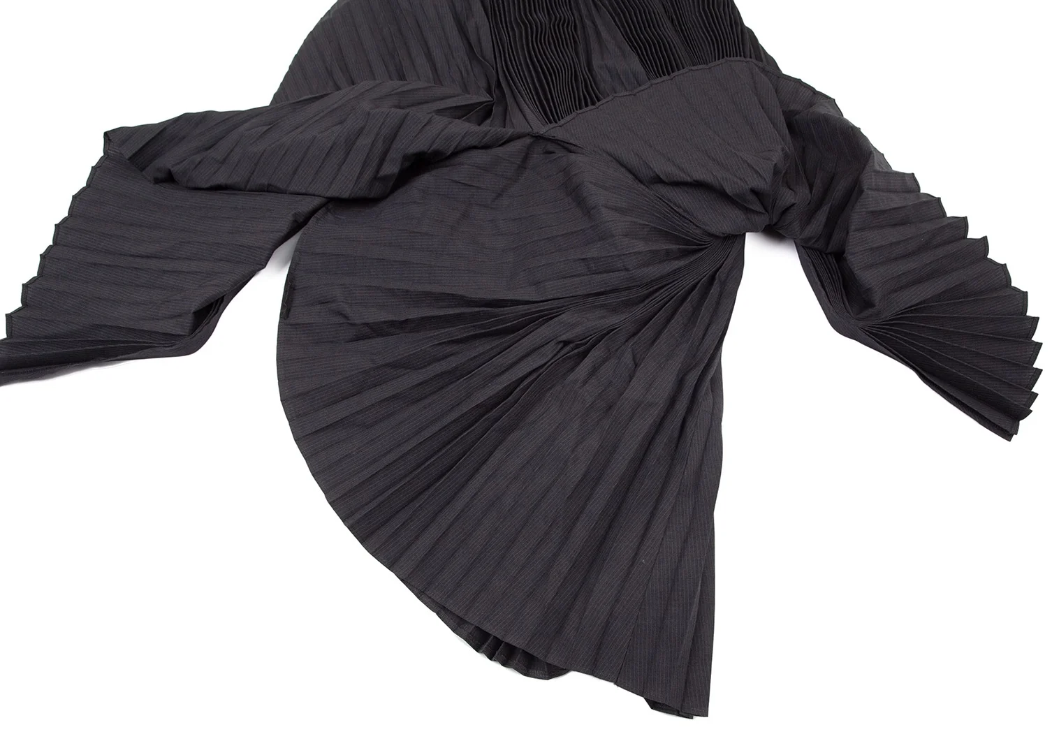 ジュンヤワタナベ コムデギャルソンJUNYA WATANABE COMME des GARCONSピンストライプアコーディオンプリーツポンチョ チャコールM