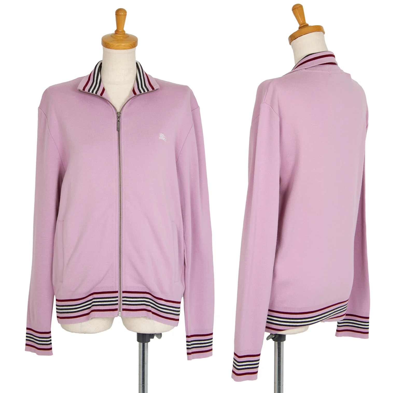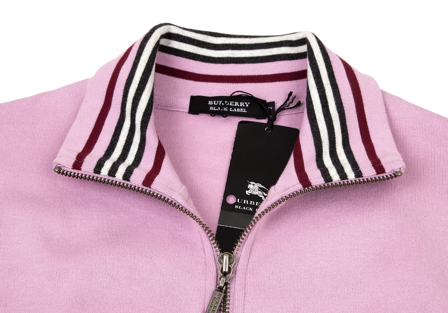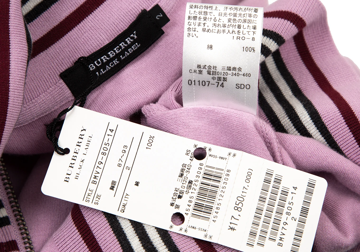 バーバリー ブラックレーベルBURBERRY BLACK LABEL コットン胸ロゴ刺繍ラインスウェットジップアップブルゾン パープル2