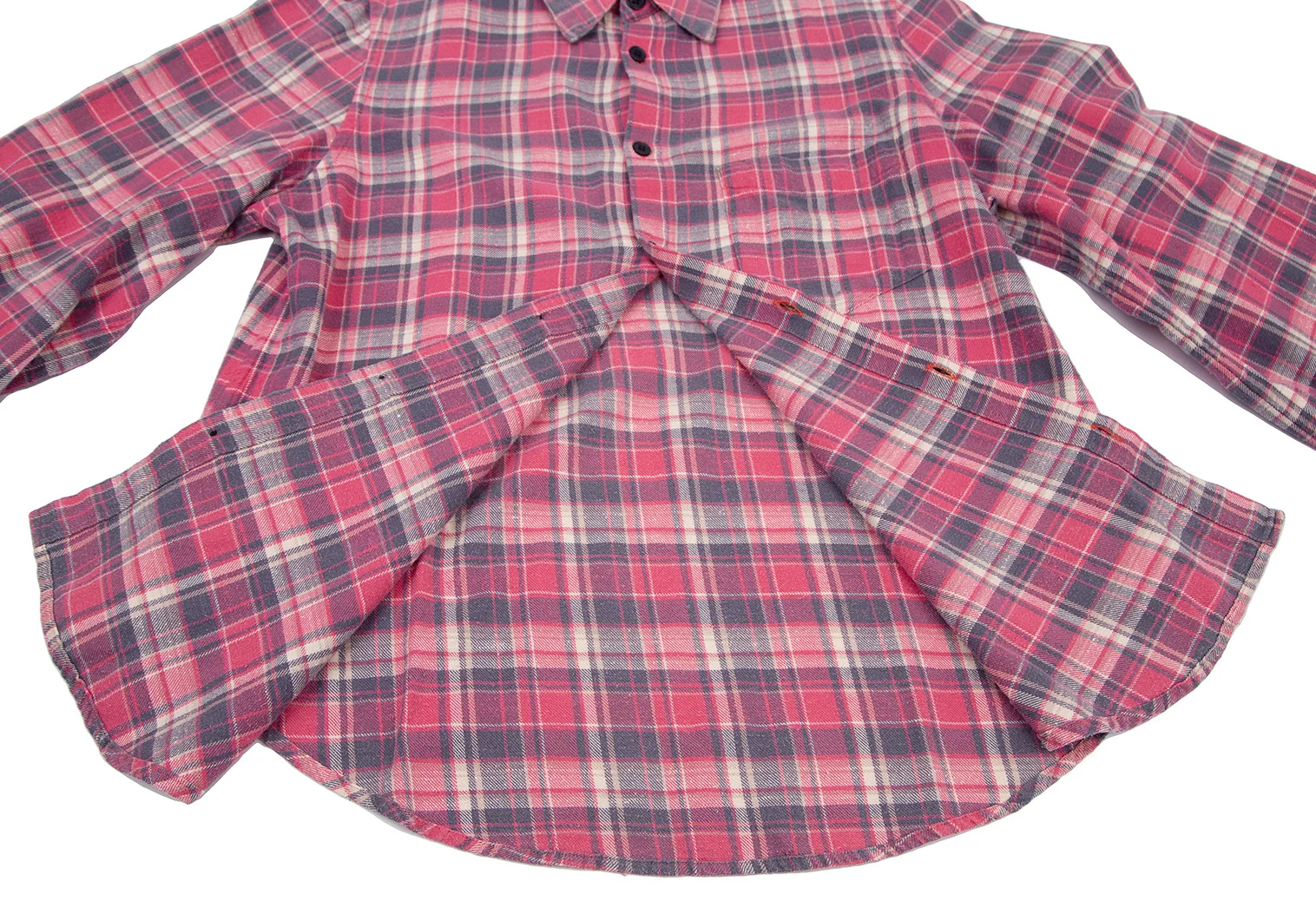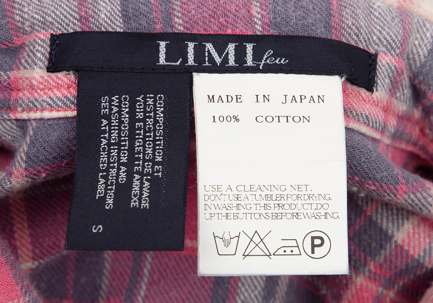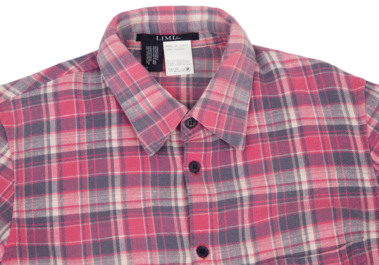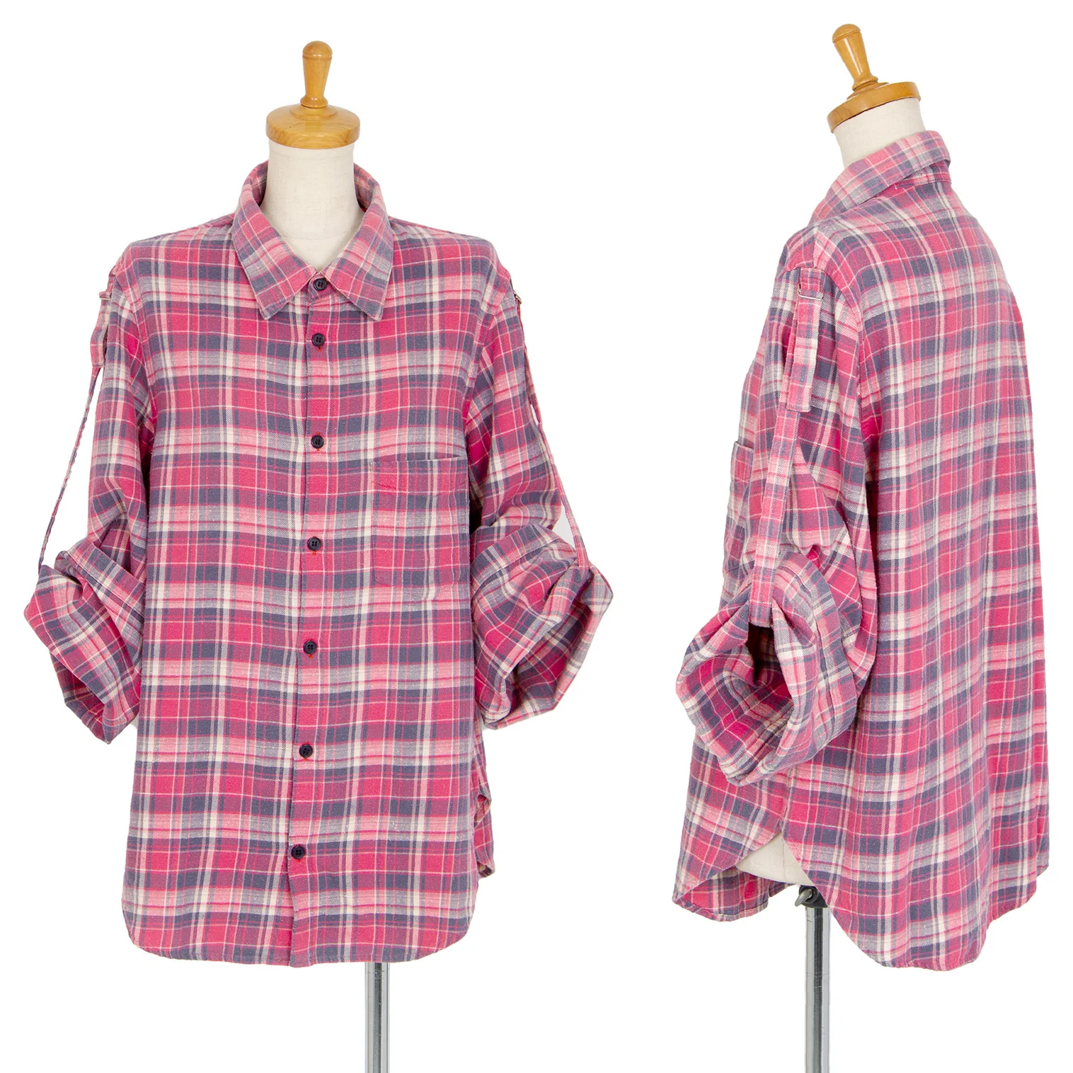 リミフゥLIMI feu ピリングコットン袖ロールアップチェックシャツ ピンクS