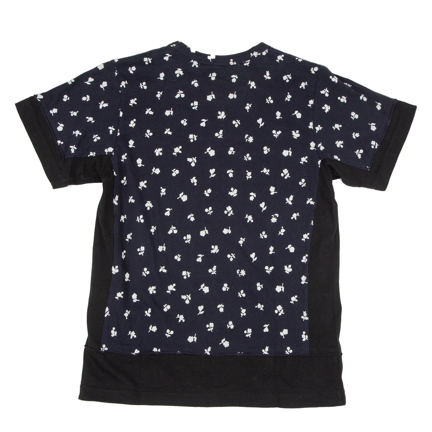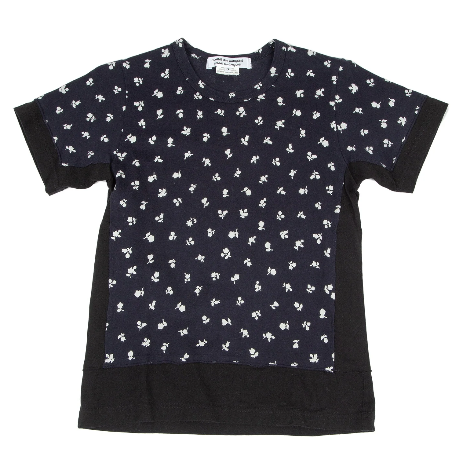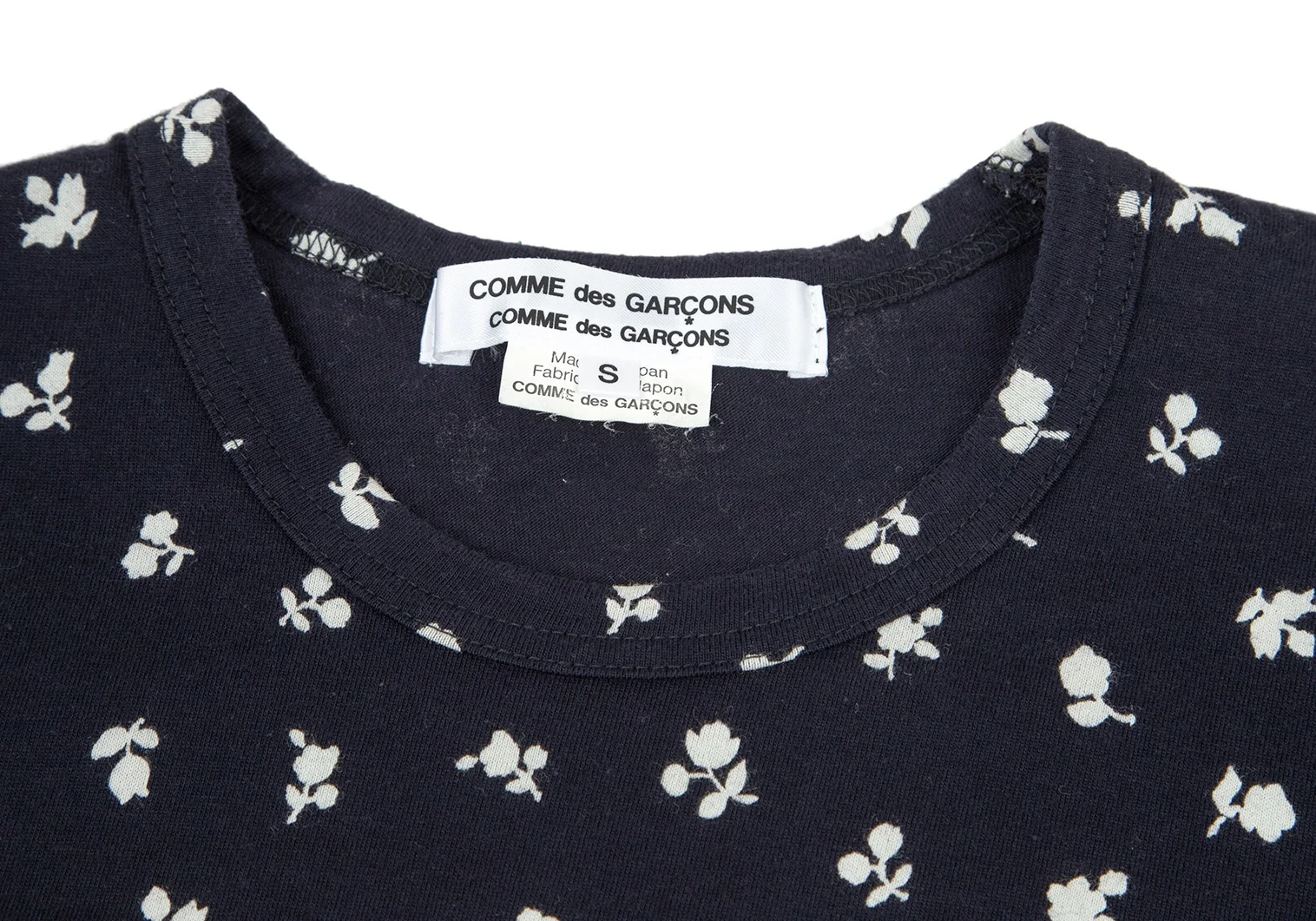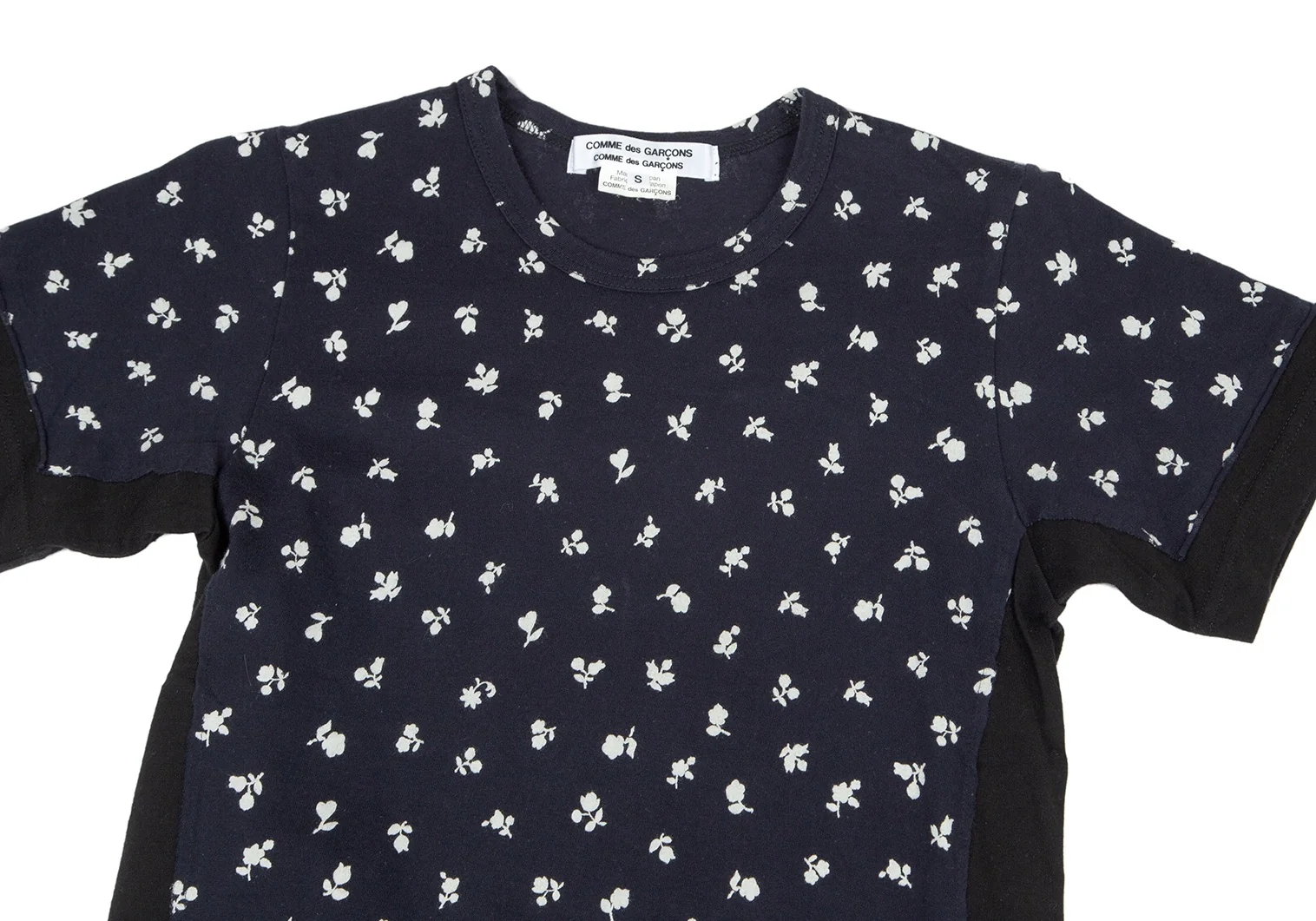 コムコム コムデギャルソンCOMME des GARCONS 小花柄プリント切替Tシャツ 紺黒S