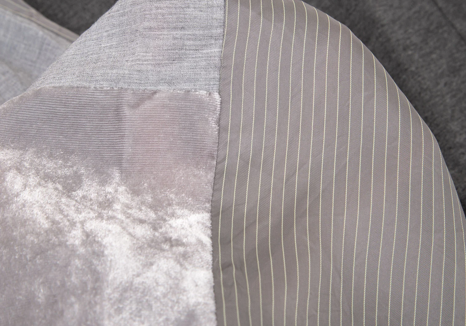 天竺部分 綿50% レーヨン50% ベルベット部分基布 ポリエステル100% ベルベット部分パイル レーヨン100% ストライプ部分 キュプラ100% 無地部分 指定外繊維(テンセル)56% 綿44% リブ レーヨン98% ポリウレタン2%