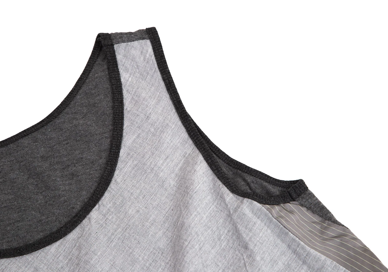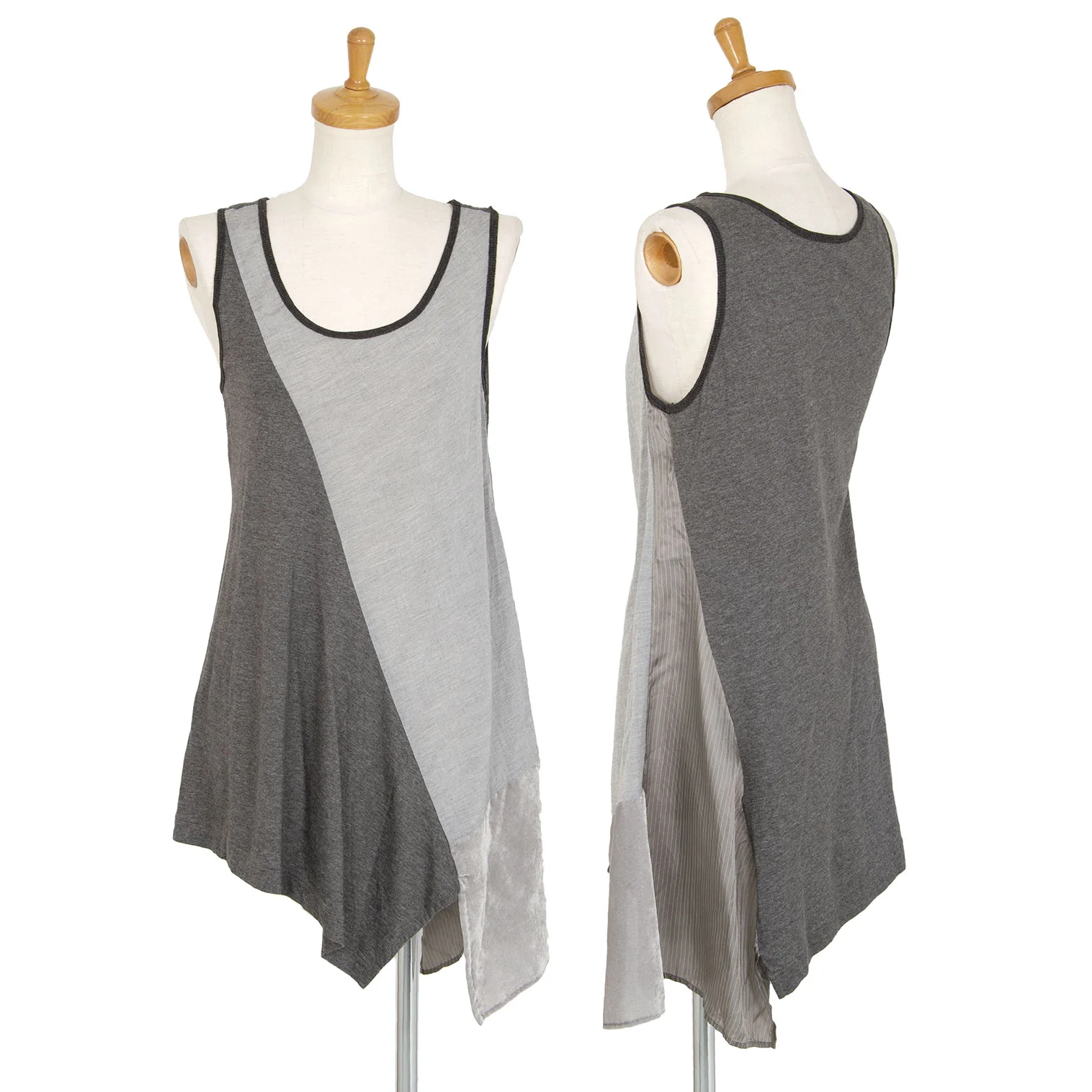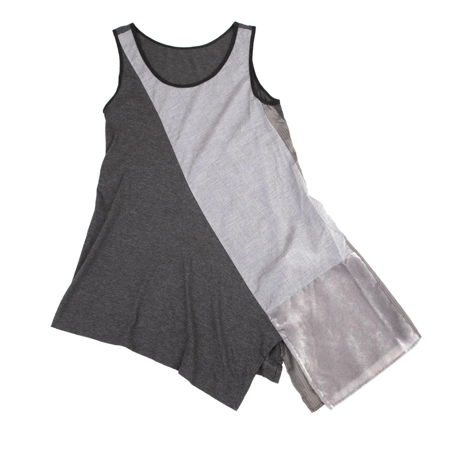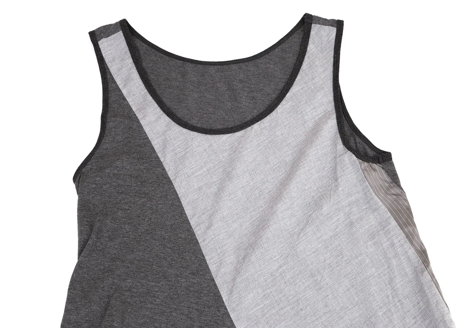 ワイズY's マルチファブリック切替アシンメトリーノースリーブチュニック グレー濃淡2