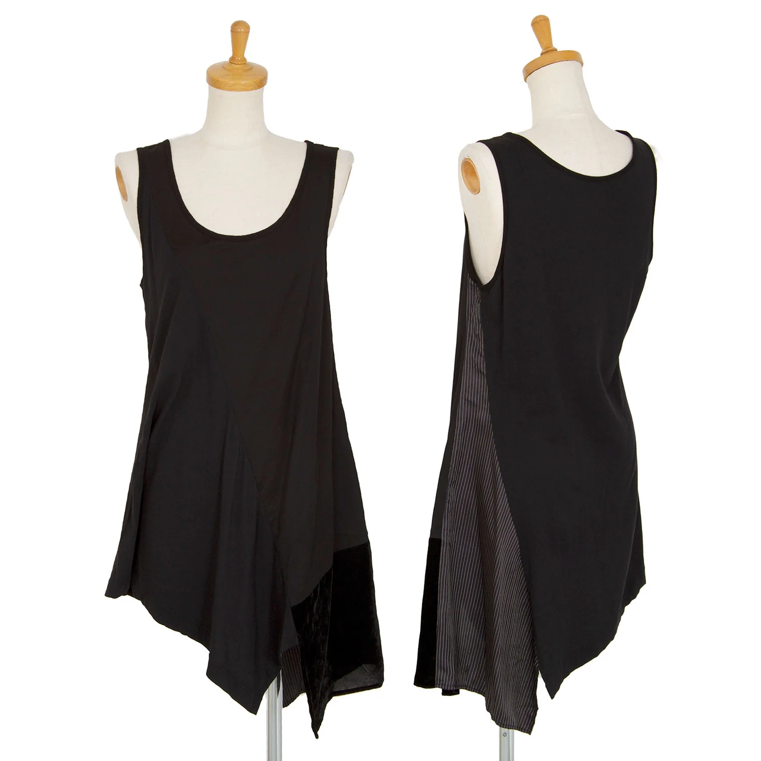 ワイズY's マルチファブリック切替アシンメトリーノースリーブチュニック 黒2