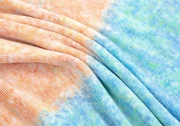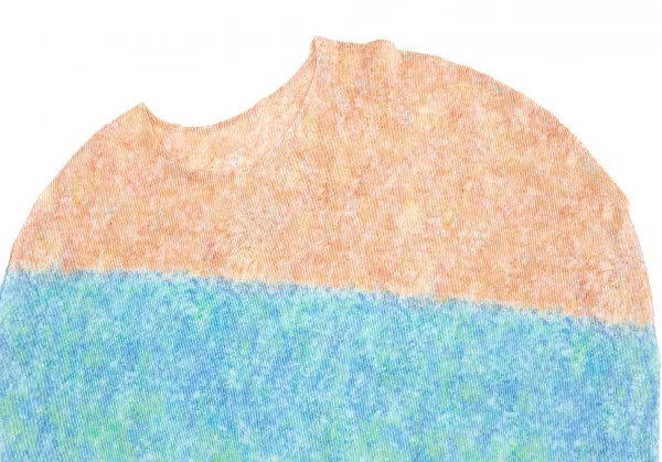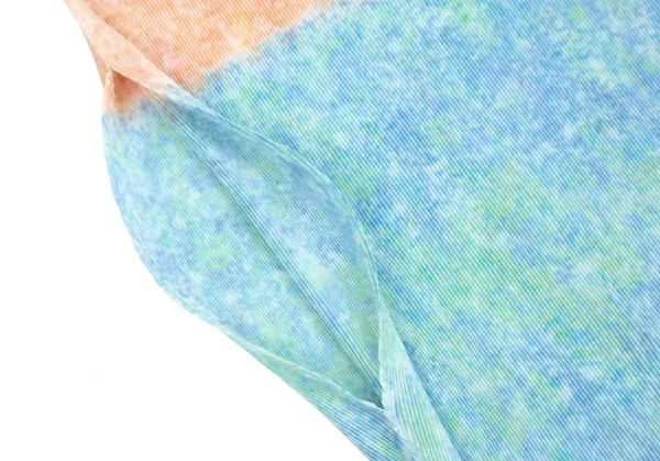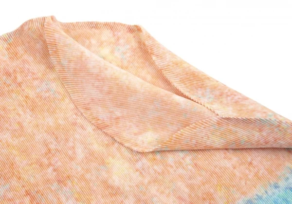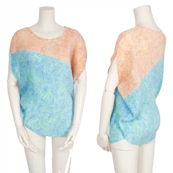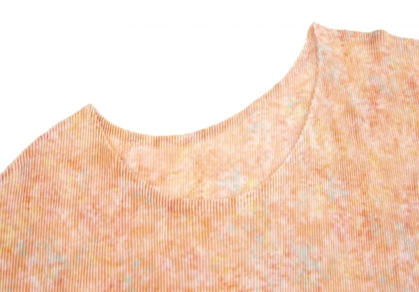 プリーツプリーズPLEATS PLEASE 細プリーツまだらバイカラーサークルシルエットトップス 青オレンジマルチF