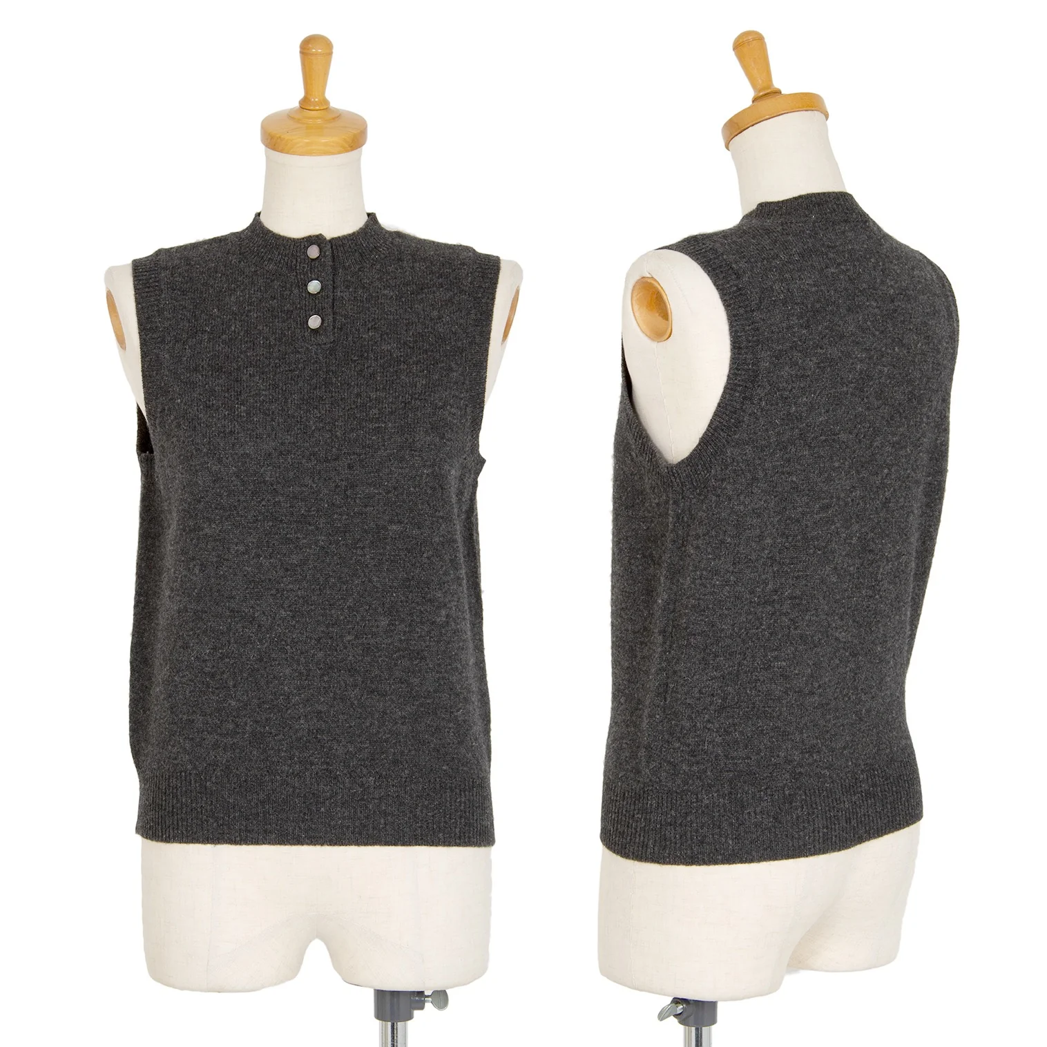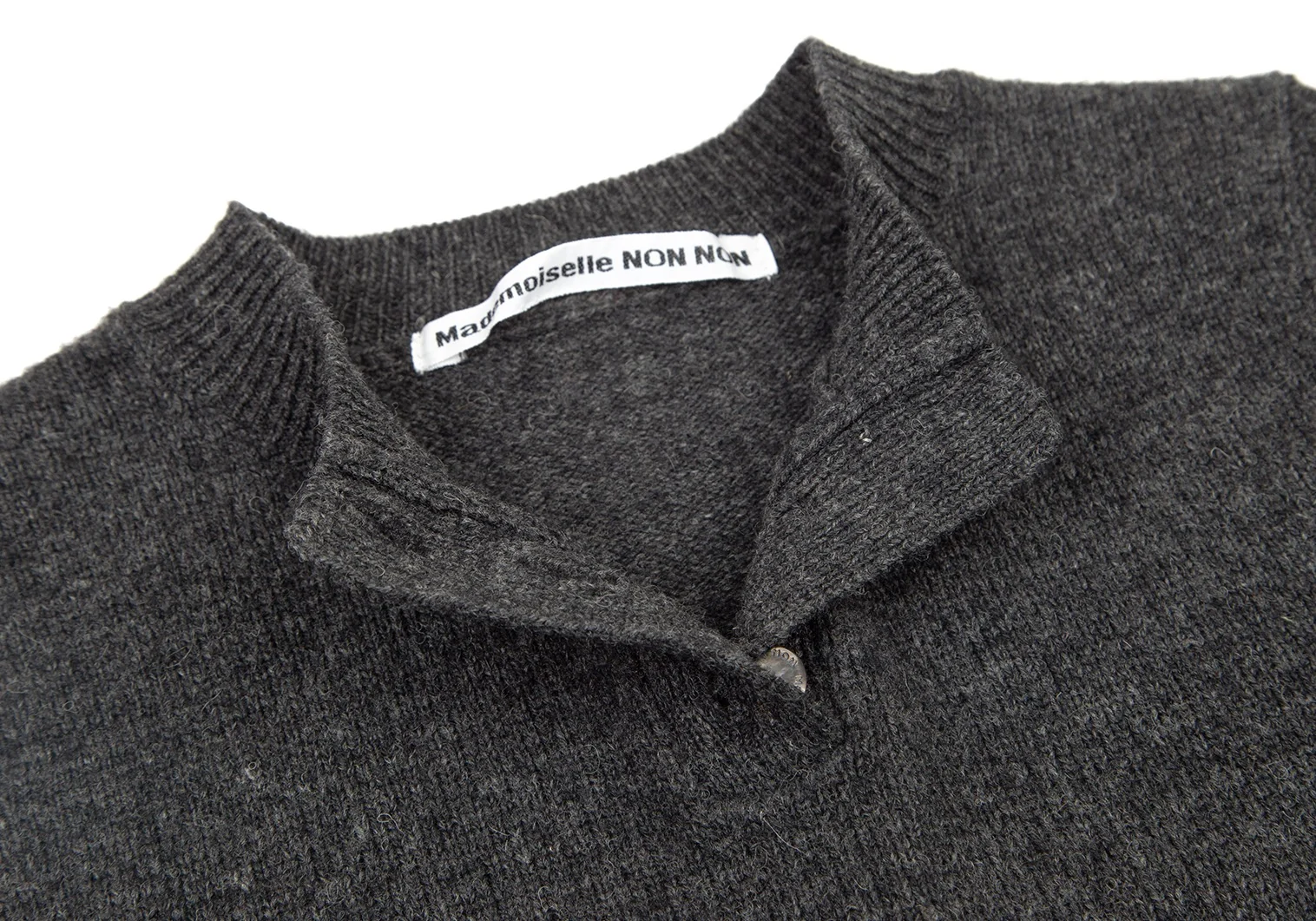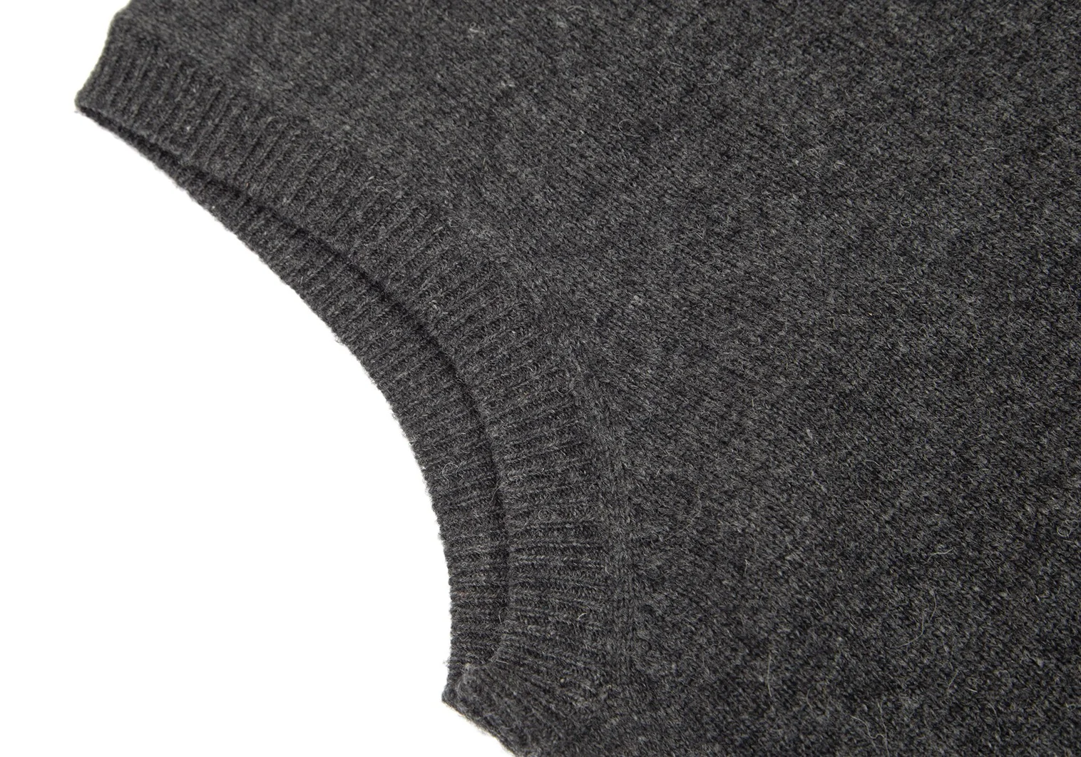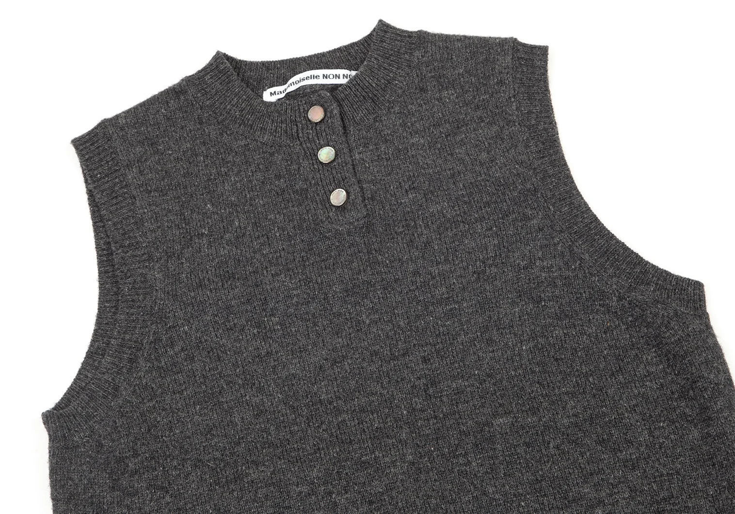 マドモアゼルノンノンMademoiselle NON NONウールヘンリーネックロゴ刺繍ニットベスト チャコールM