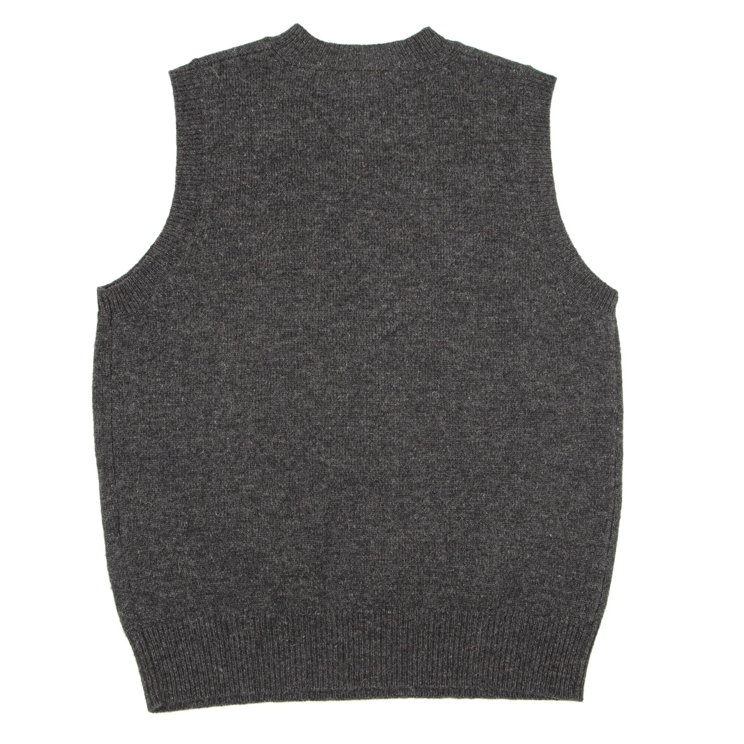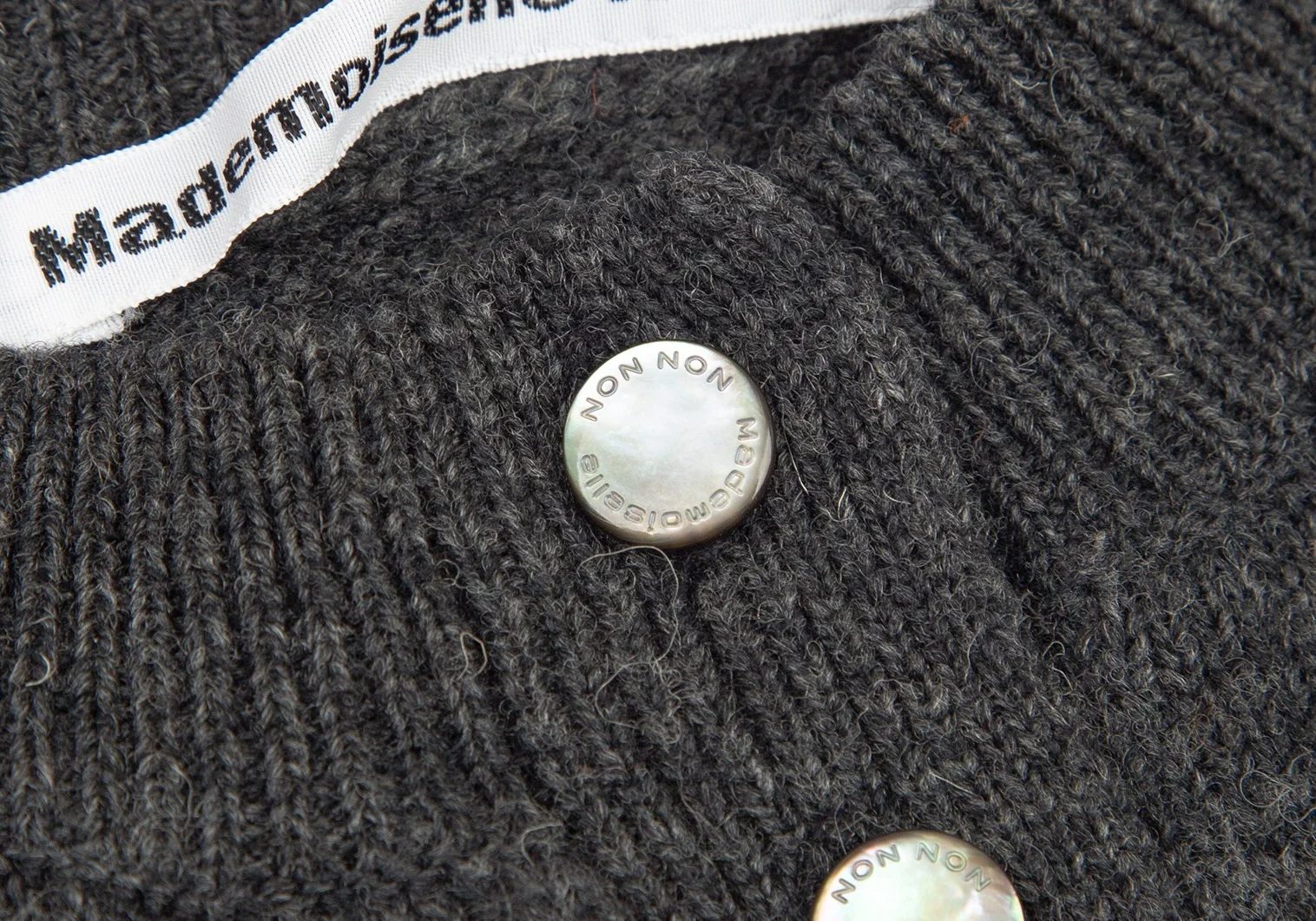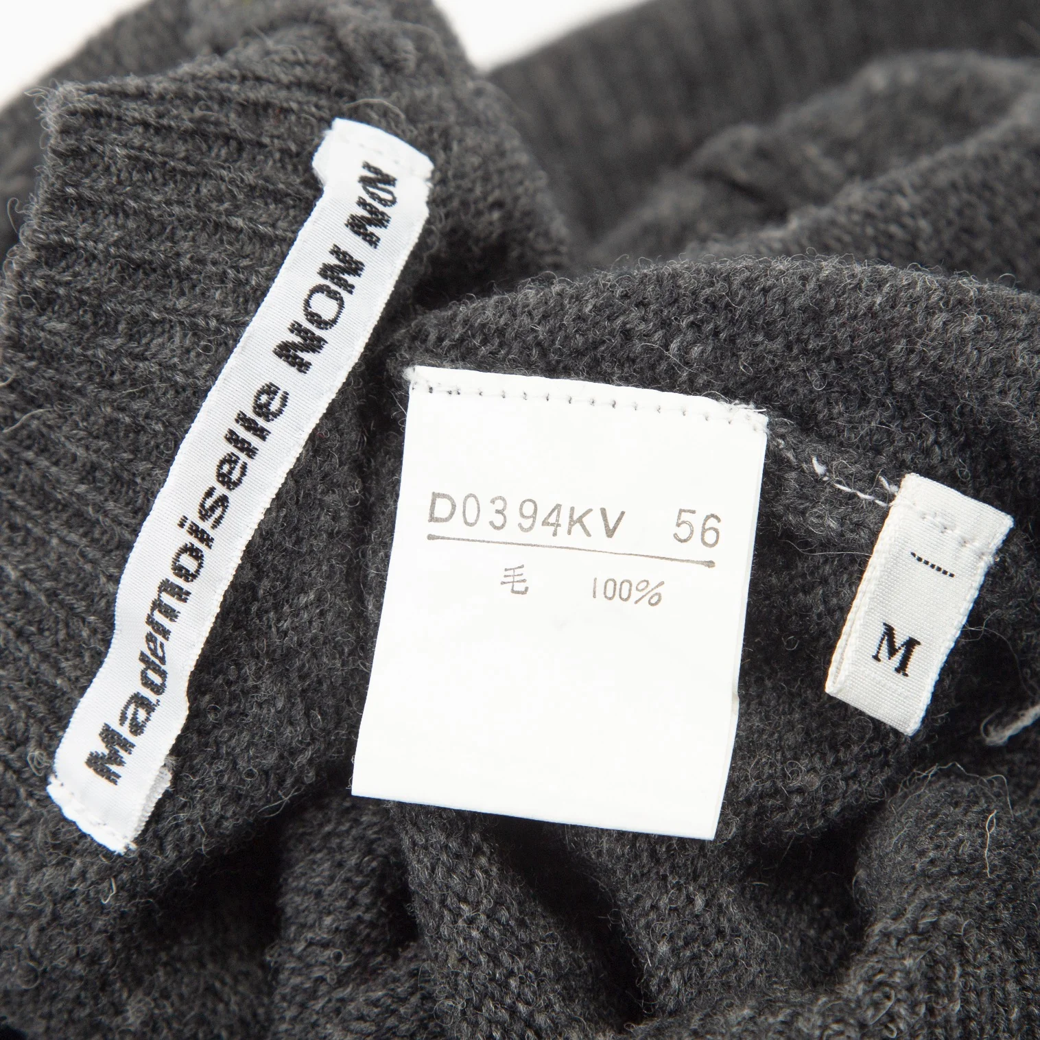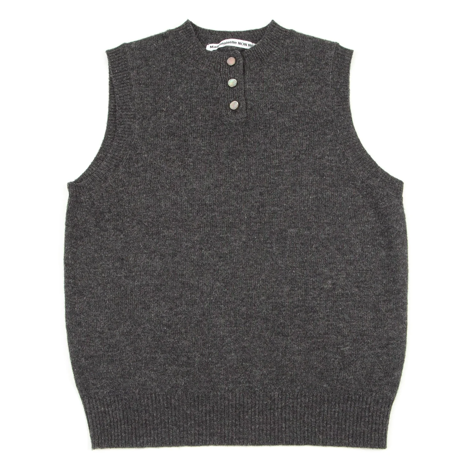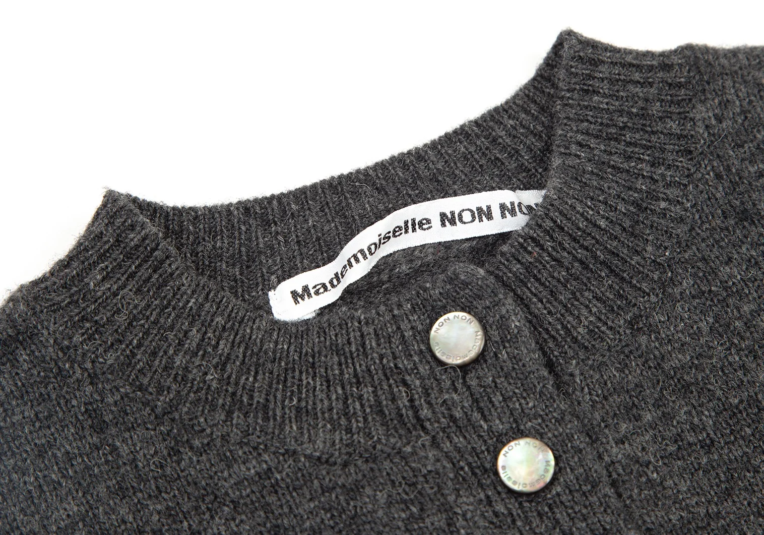 マドモアゼルノンノンMademoiselle NON NONウールヘンリーネックロゴ刺繍ニットベスト チャコールM