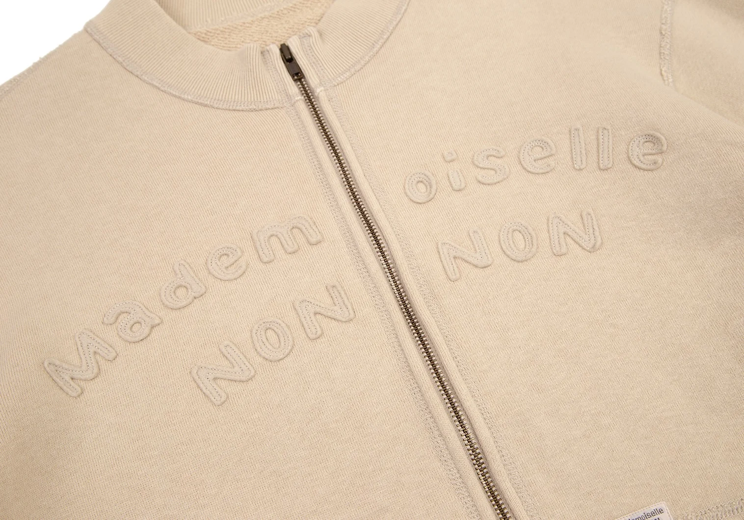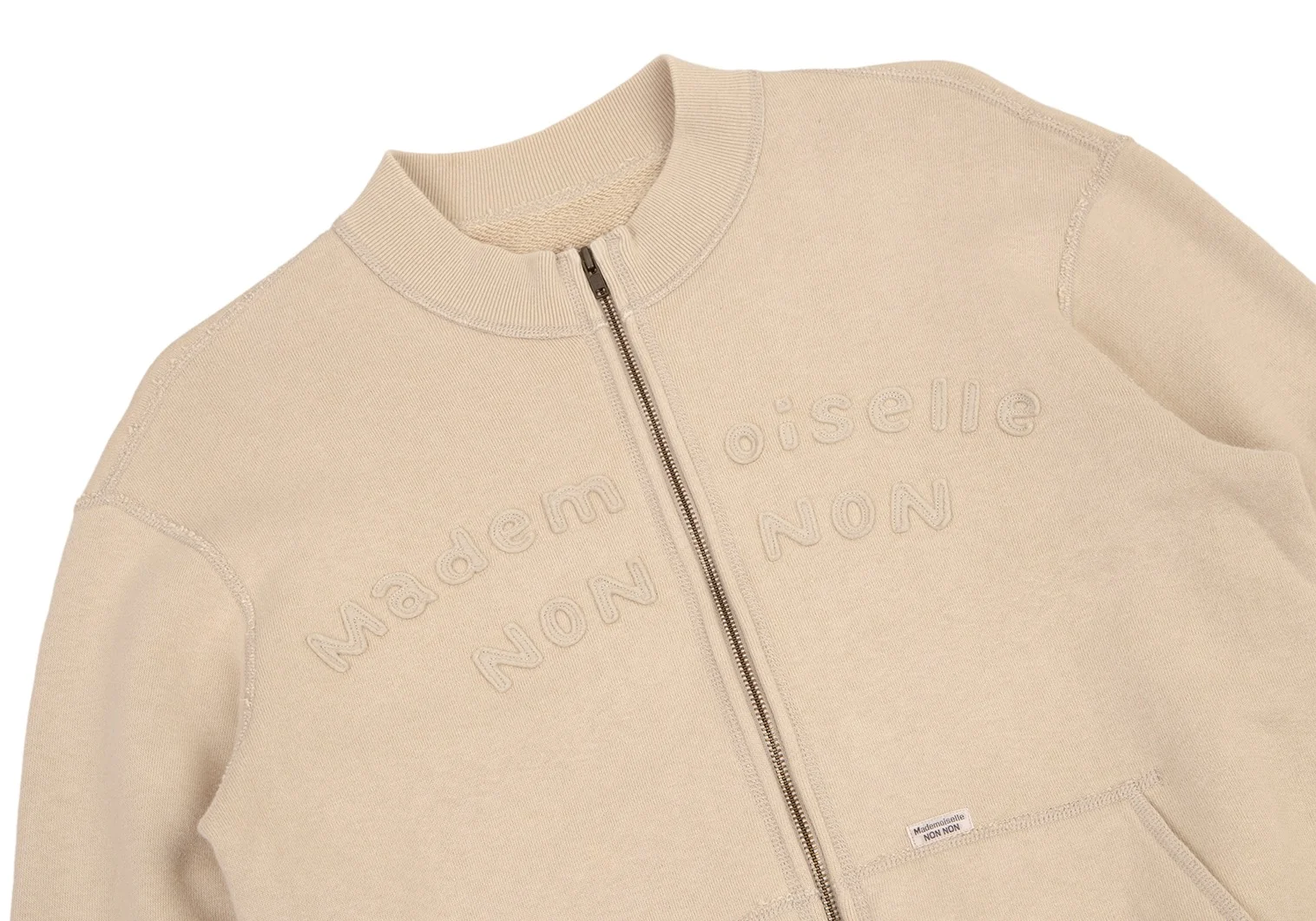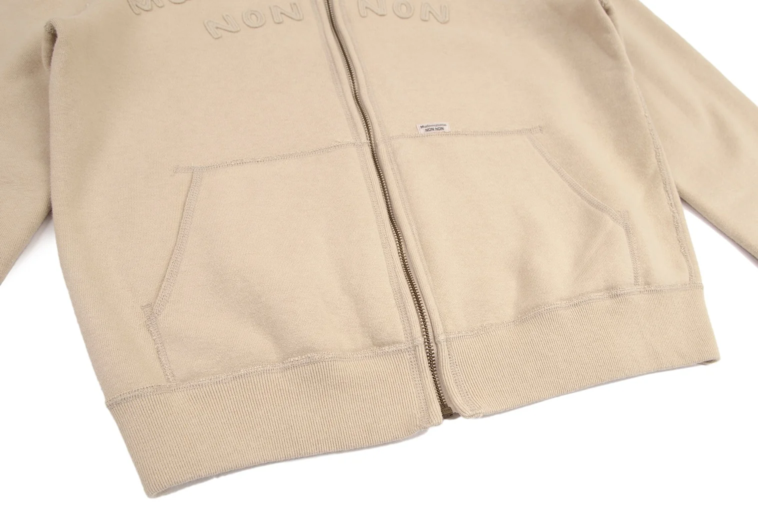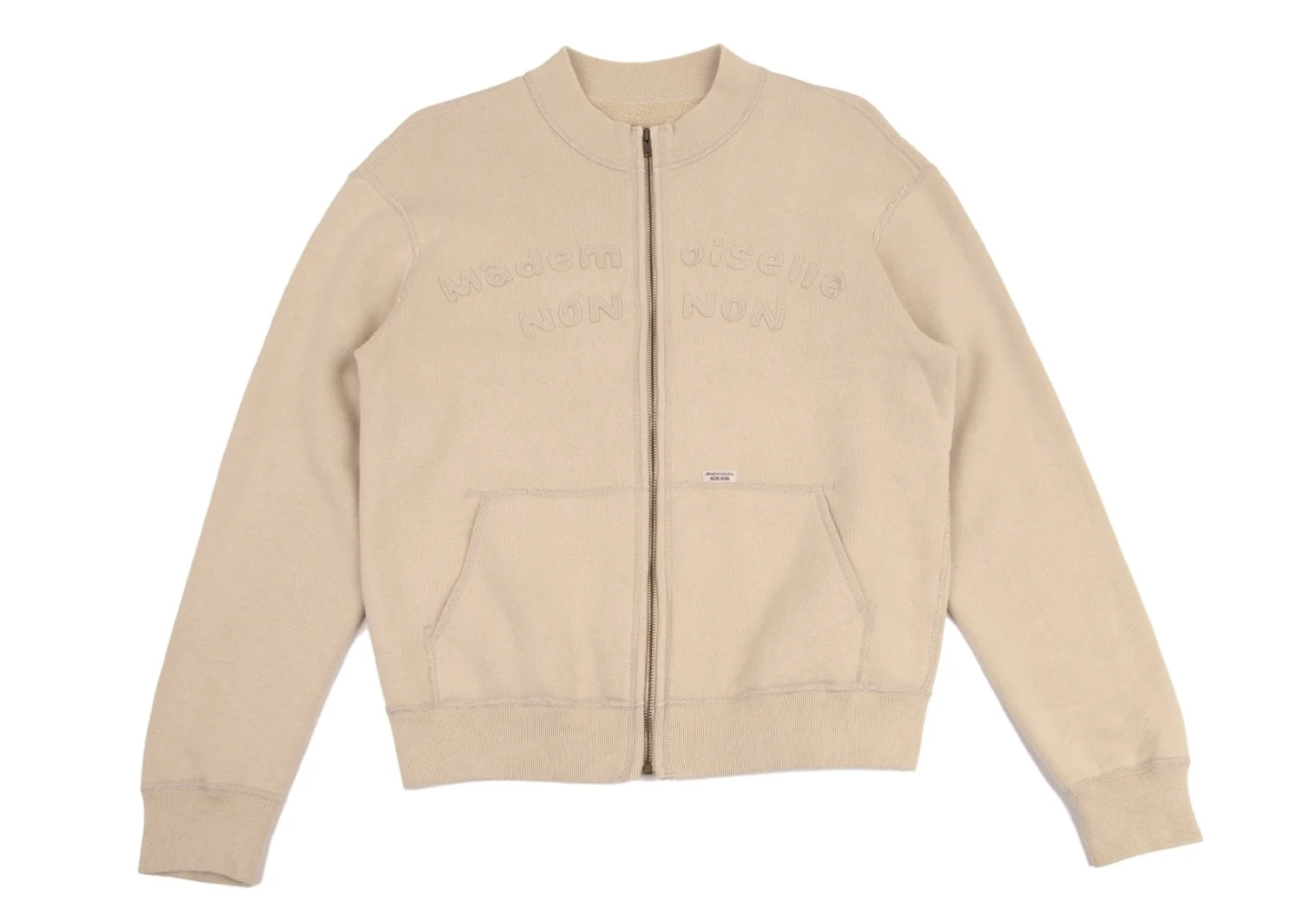 マドモアゼルノンノンMademoiselle NON NON コットンロゴワッペンステッチデザインジップアップスウェット ベージュM位