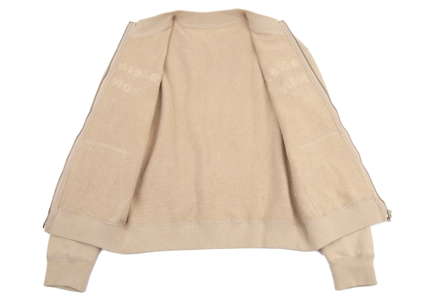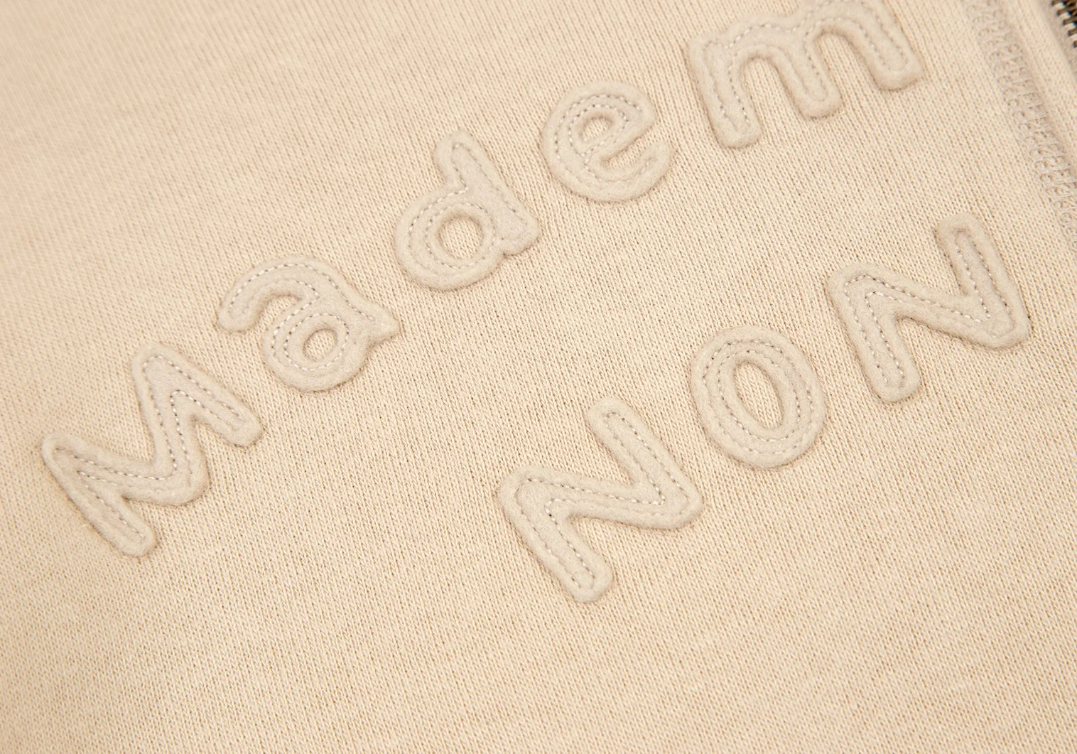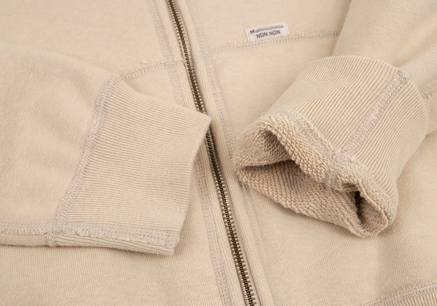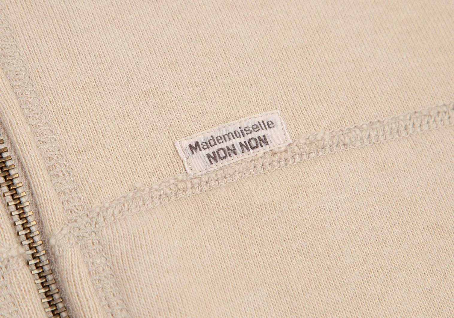 マドモアゼルノンノンMademoiselle NON NON コットンロゴワッペンステッチデザインジップアップスウェット ベージュM位