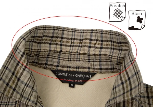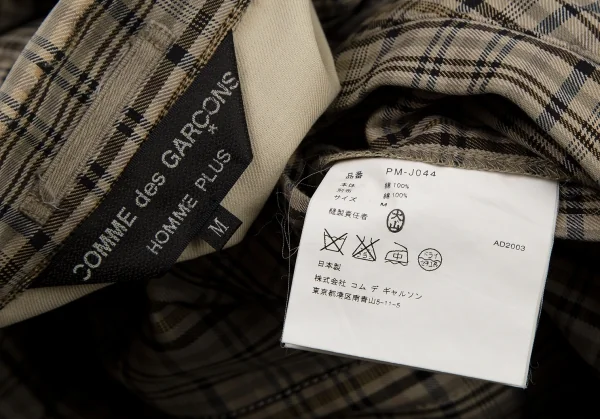 コムデギャルソン オムプリュスCOMME des GARCONS HOMME PLUS コットンチェックジップリバーシブルジャケット ベージュM