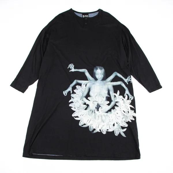 ブラックスキャンダル ヨウジヤマモトBLACK Scandal Yohji Yamamoto 内田すずめ 百合阿修羅プリントヘンリーネックロングカットソー 黒3