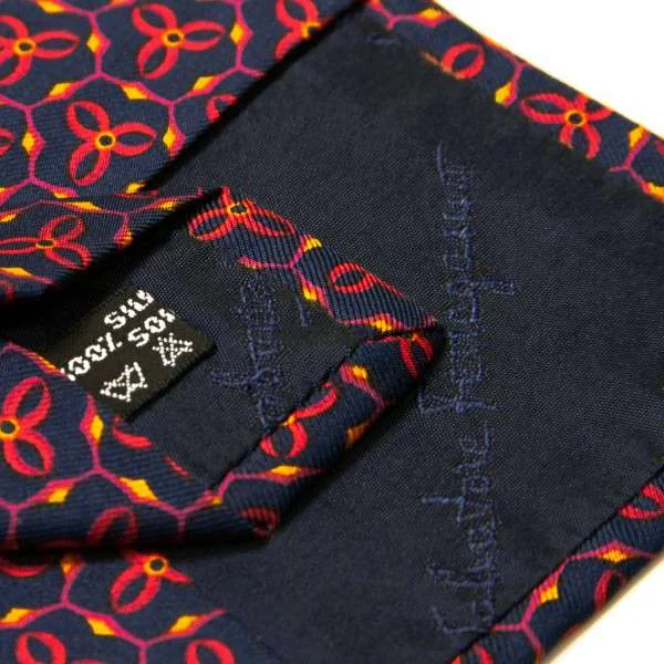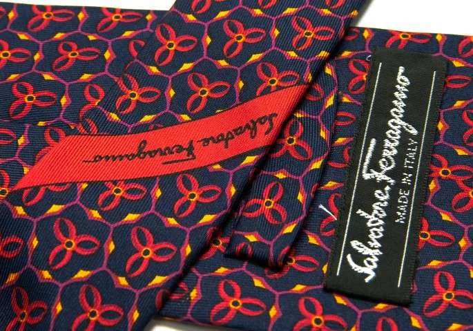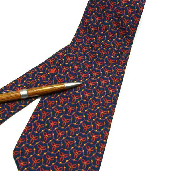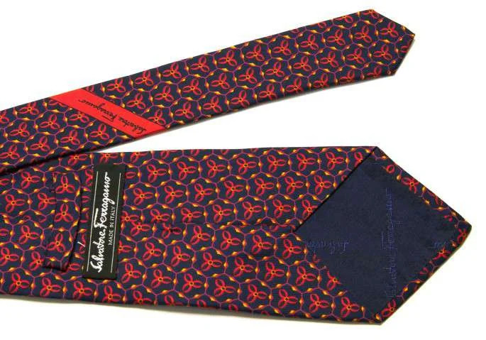 【SALE】サルバトーレフェラガモSalvatore Ferragamo 幾何学模様シルクネクタイ 紺赤F