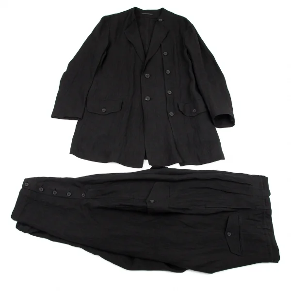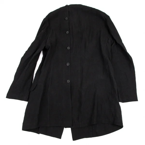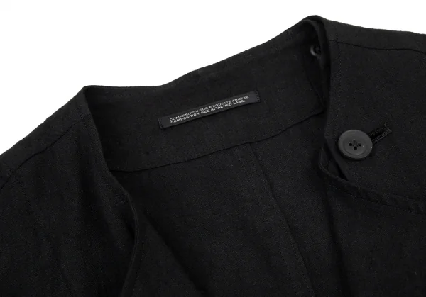 ヨウジヤマモト プールオムYohji Yamamoto POUR HOMME 襟なし左身釦あきリネンジャケット 黒2