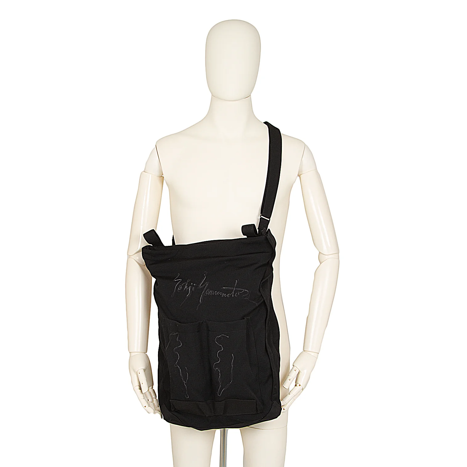ヨウジヤマモト プールオムYohji Yamamoto POUR HOMME ウールギャバ重ねマチレイヤードバッグ 黒