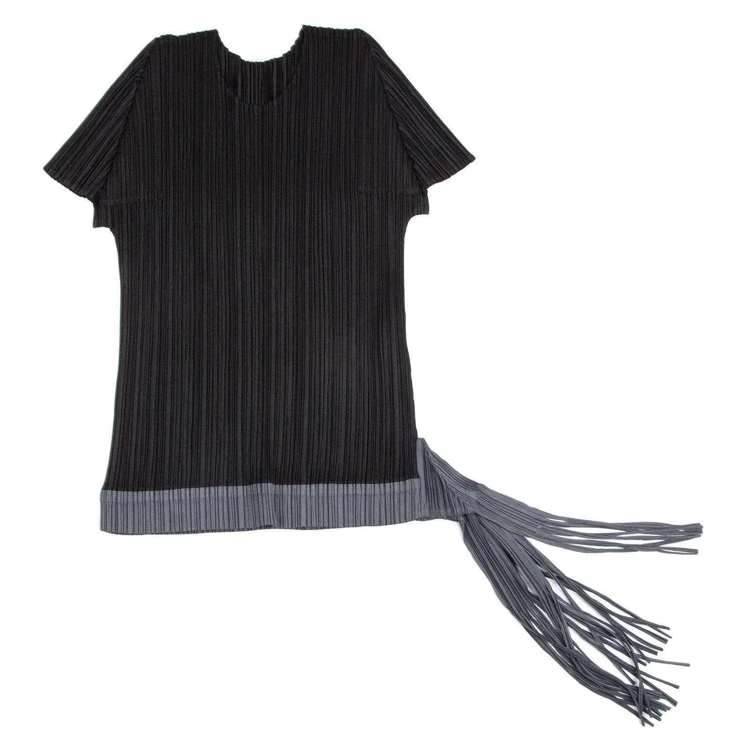 プリーツプリーズPLEATS PLEASE プリーツ裾フリンジデザインカットソー 黒グレー3