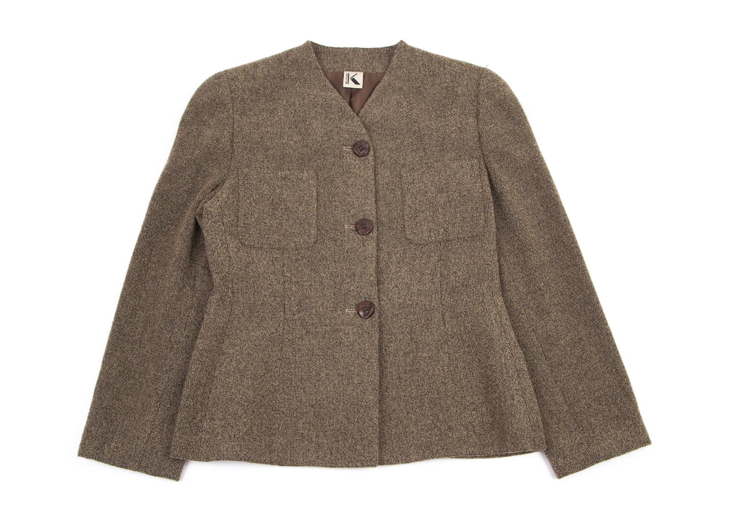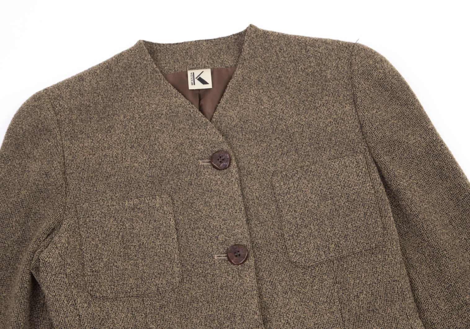 Kオブクリツィア K OF KRIZIA ウールナイロン混ノーカラー3Bジャケット ベージュ42