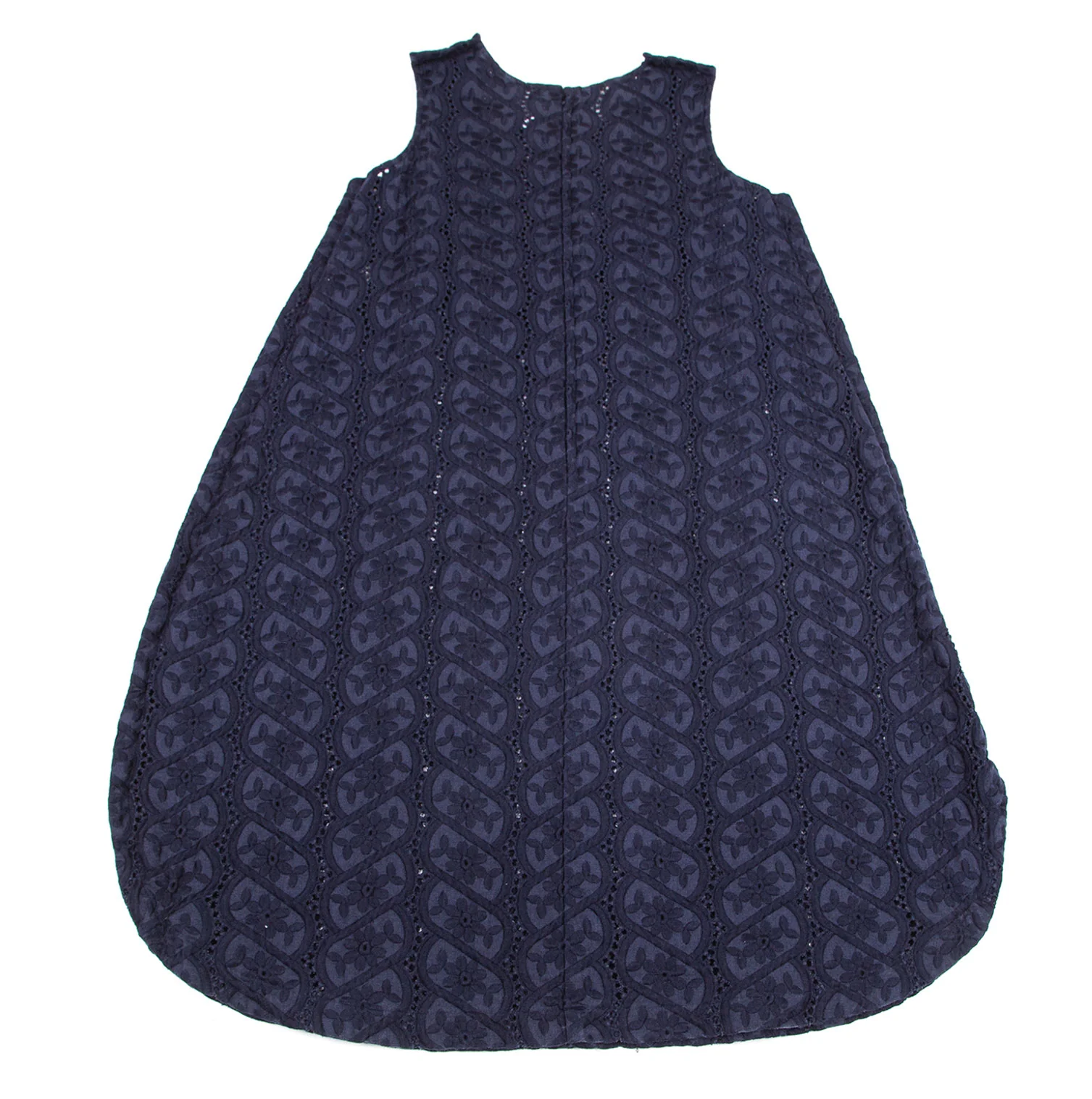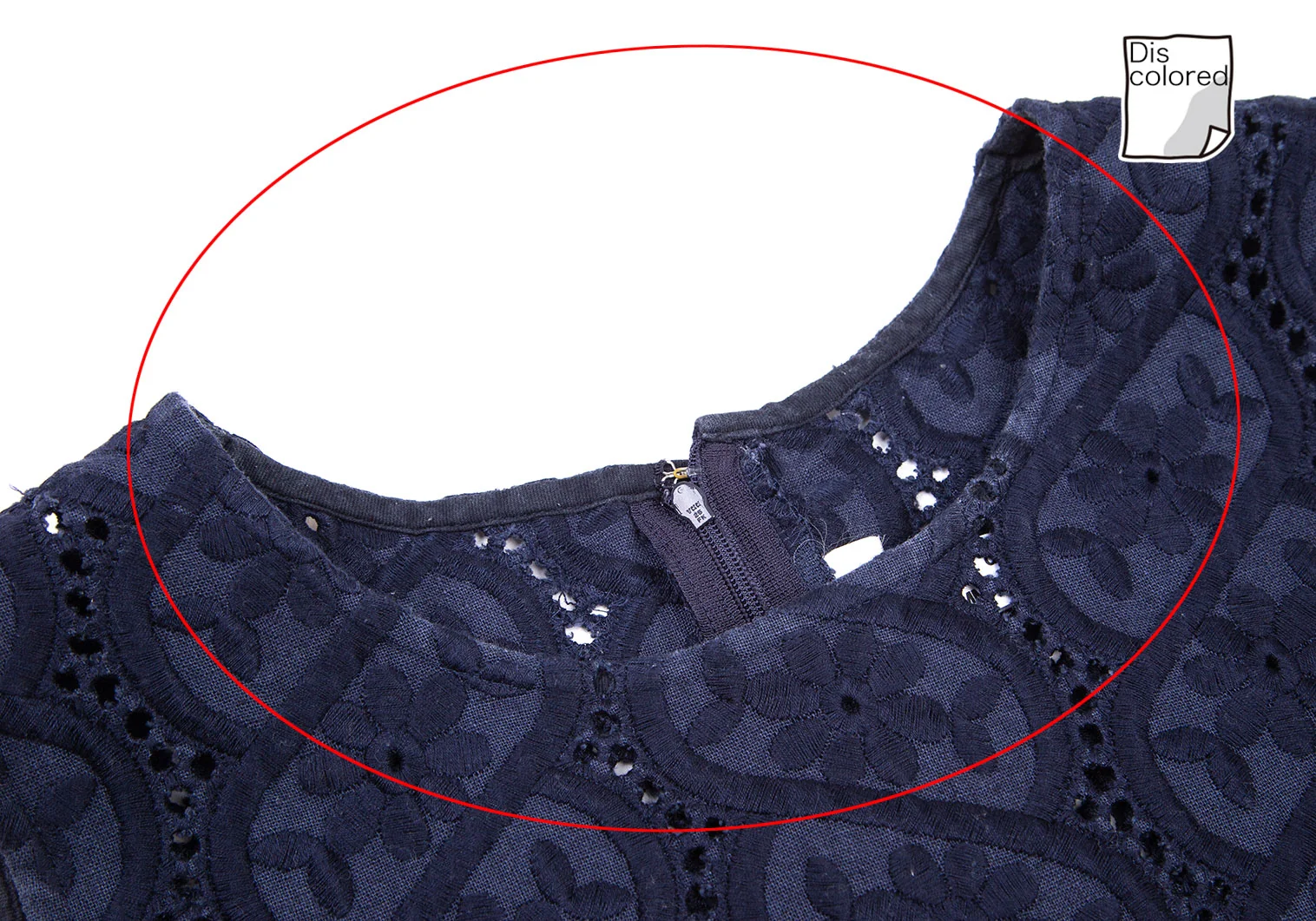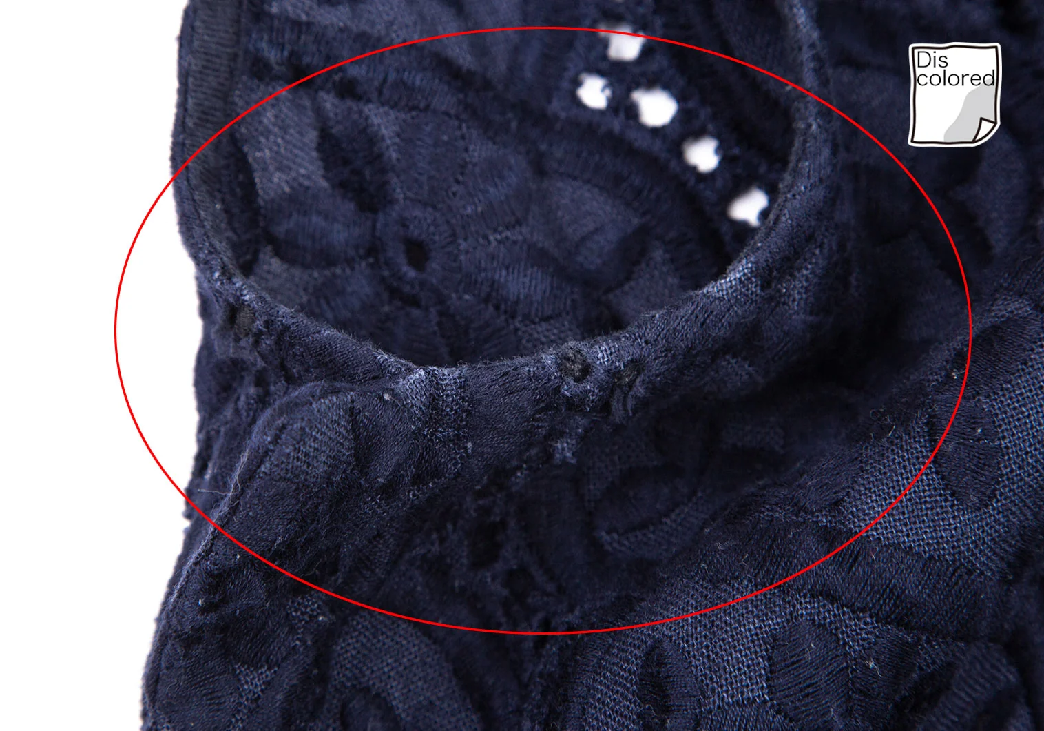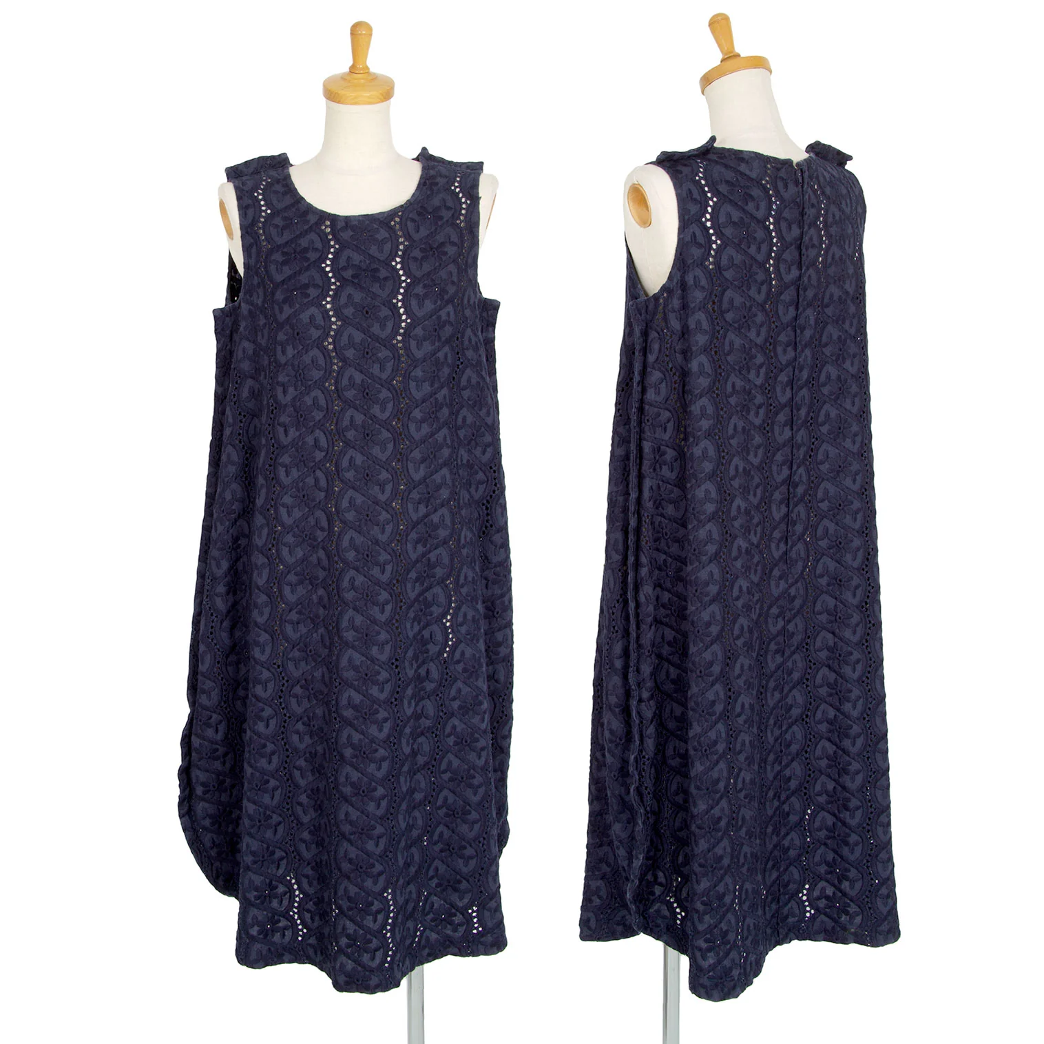 コムコム コムデギャルソンCOMME des GARCONS リネン花柄刺繍レース裾ラウンドノースリーブワンピース 紺S