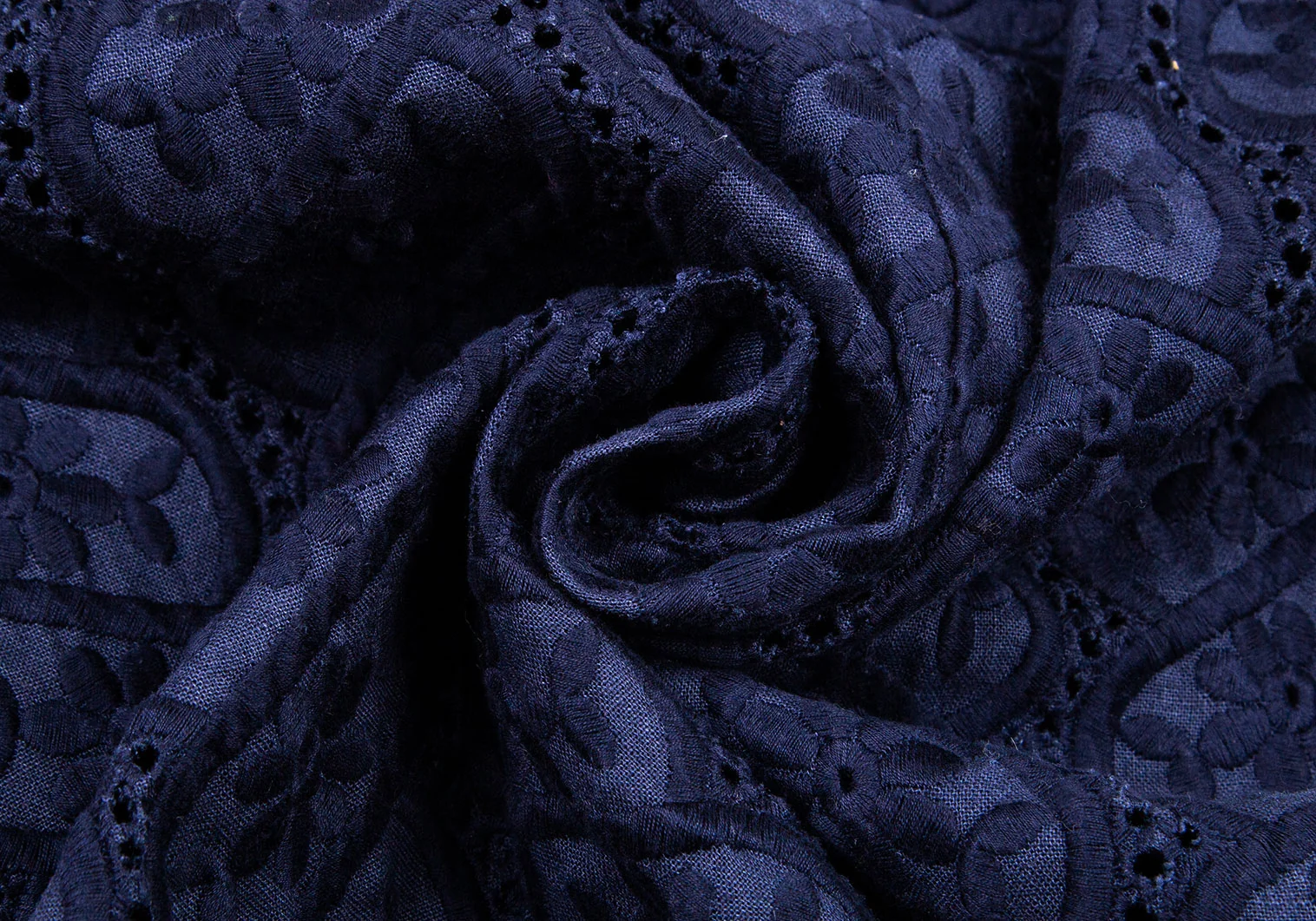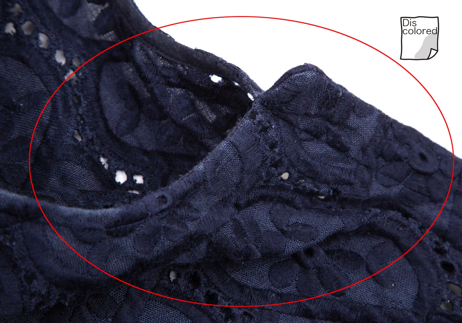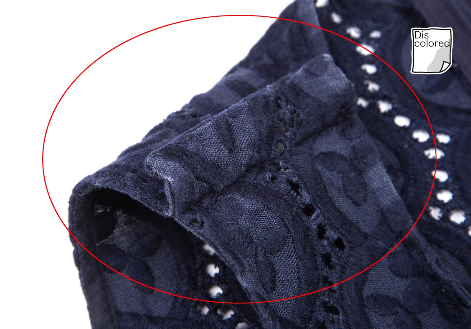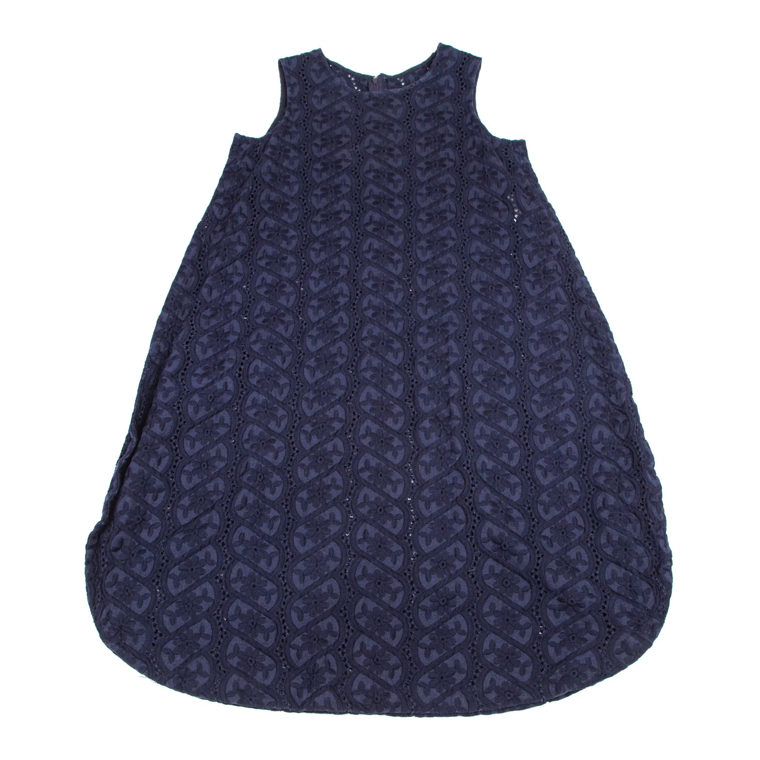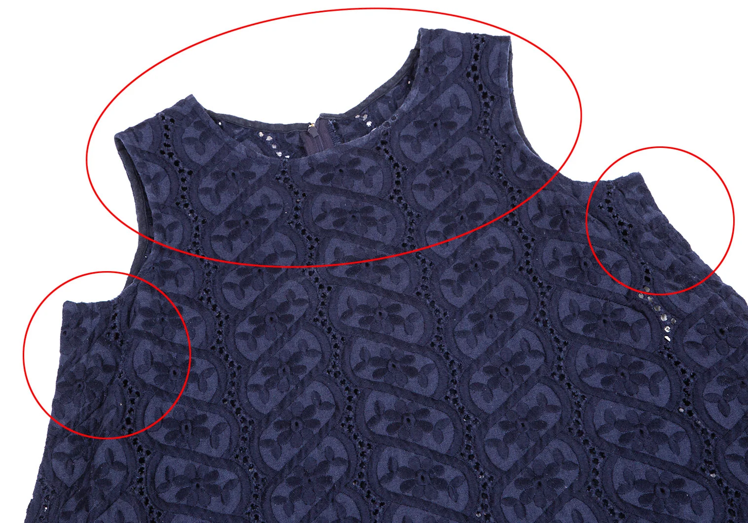 コムコム コムデギャルソンCOMME des GARCONS リネン花柄刺繍レース裾ラウンドノースリーブワンピース 紺S