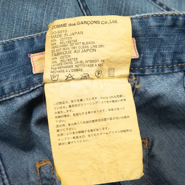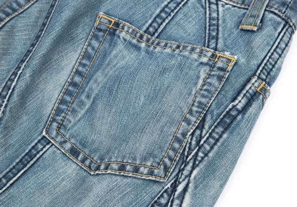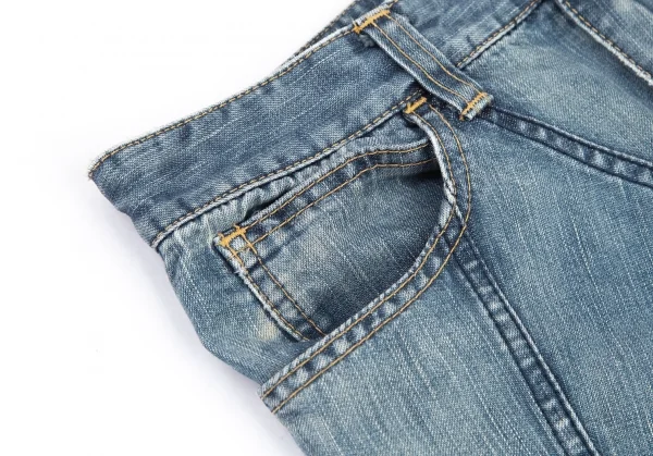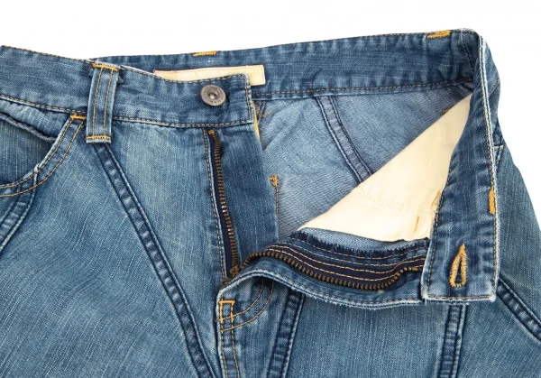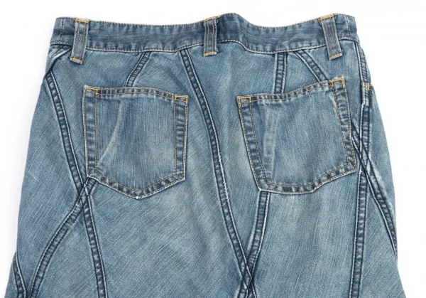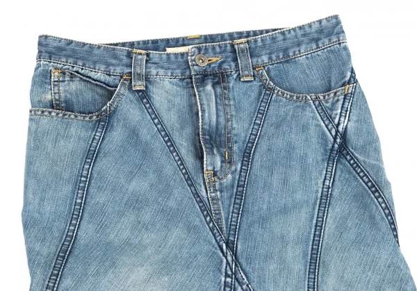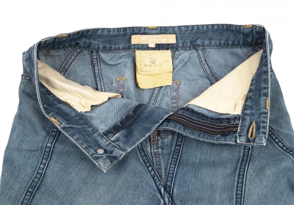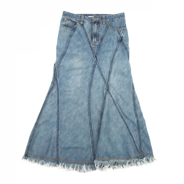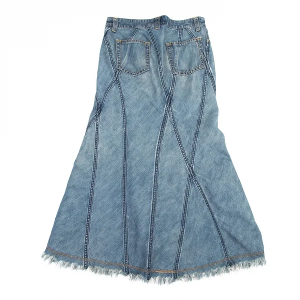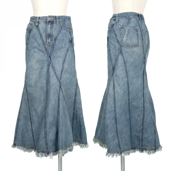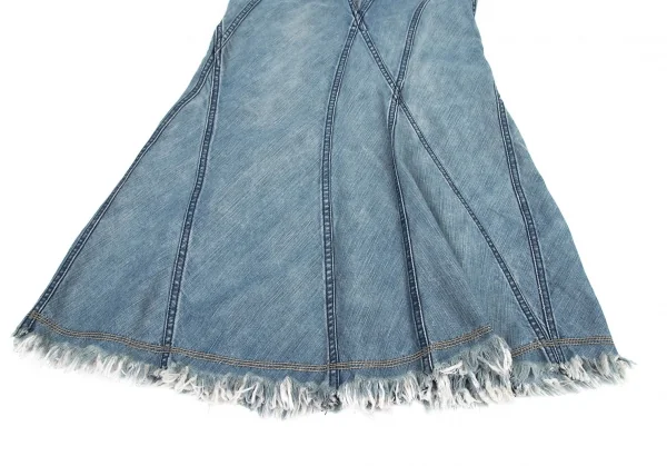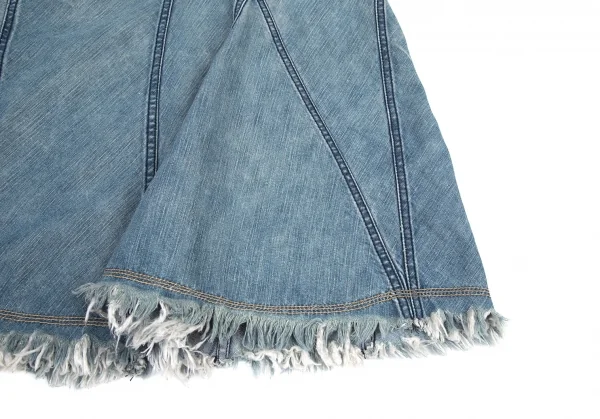 ジュンヤワタナベマンピンク コムデギャルソンJUNYA WATANABE MAN PINK COMME des GARCONS 裾フリンジ切替デニムフレアスカート 淡インディゴS