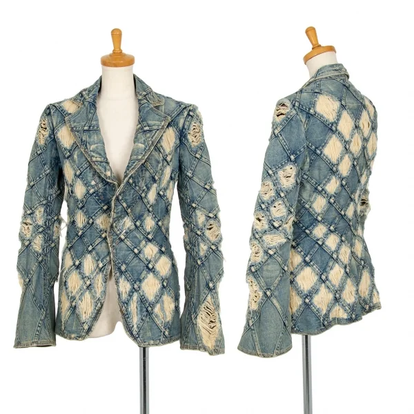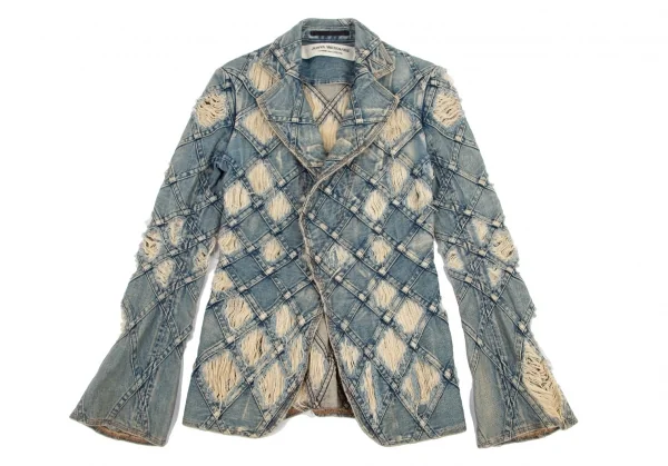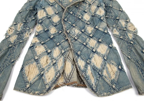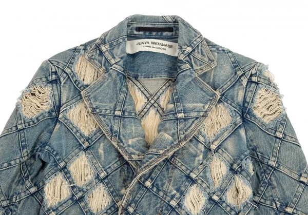 ジュンヤワタナベ コムデギャルソンJUNYA WATANABE COMME des GARCONS ハードクラッシュデニムテーラードジャケット 淡インディゴS位
