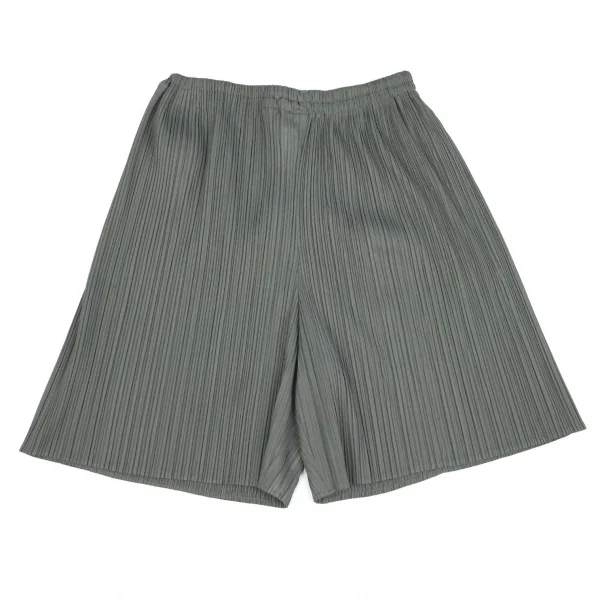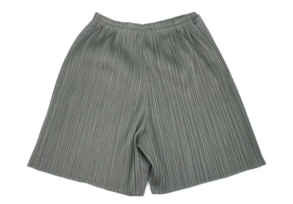イッセイミヤケISSEY MIYAKEプリーツショートパンツ カーキグレーM