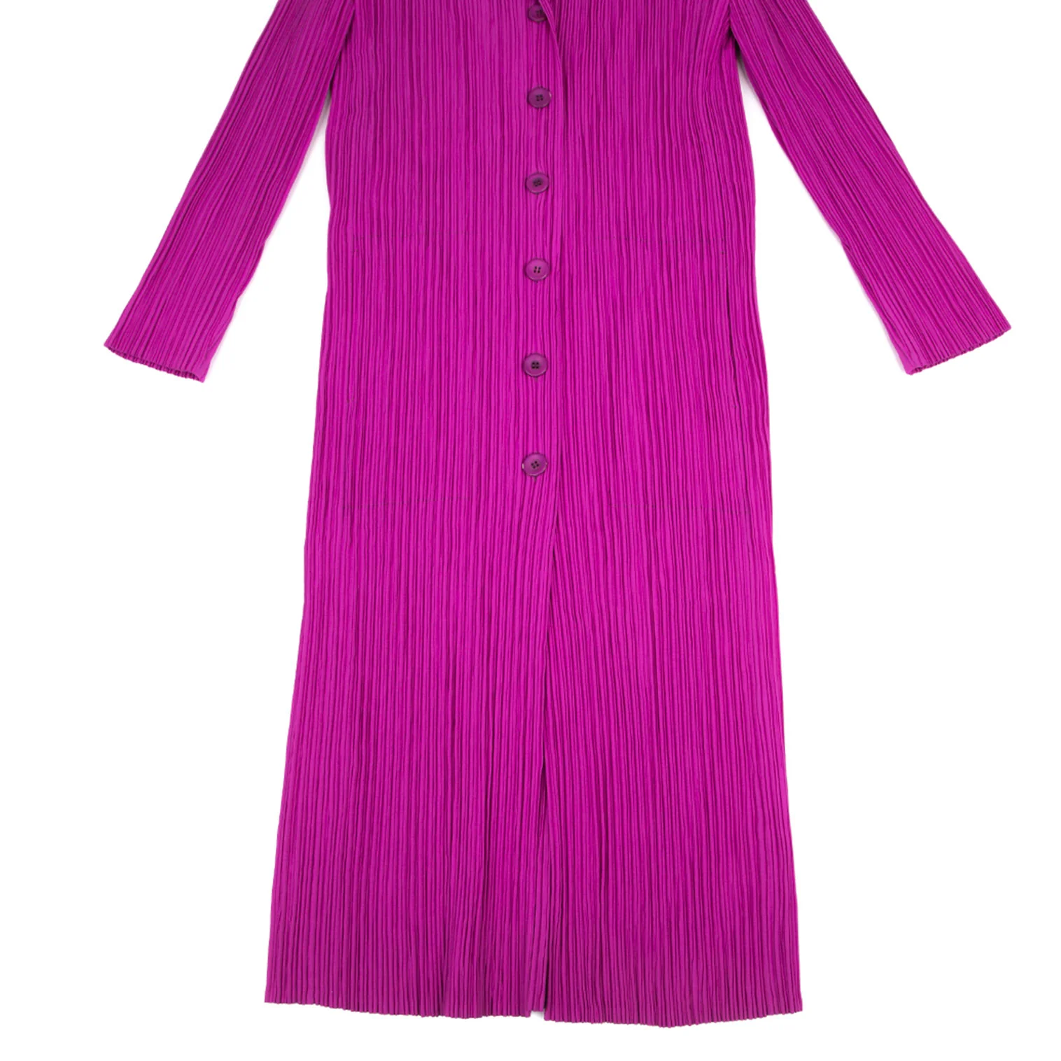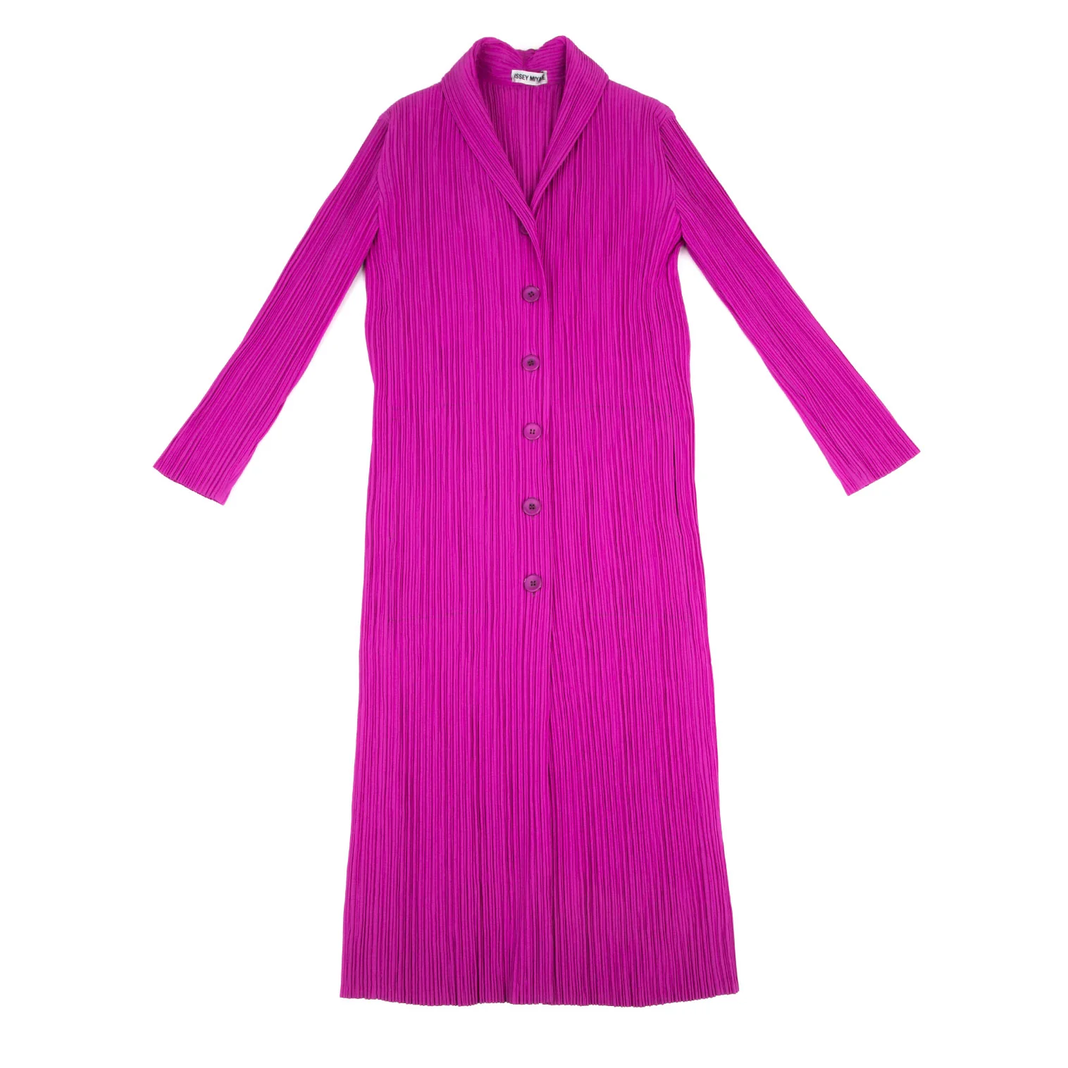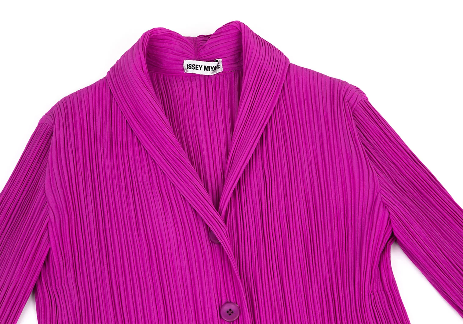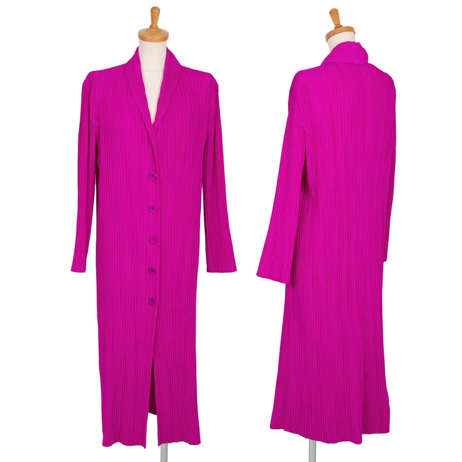 イッセイミヤケISSEY MIYAKE プリーツショールカラーロングコート 紫M位