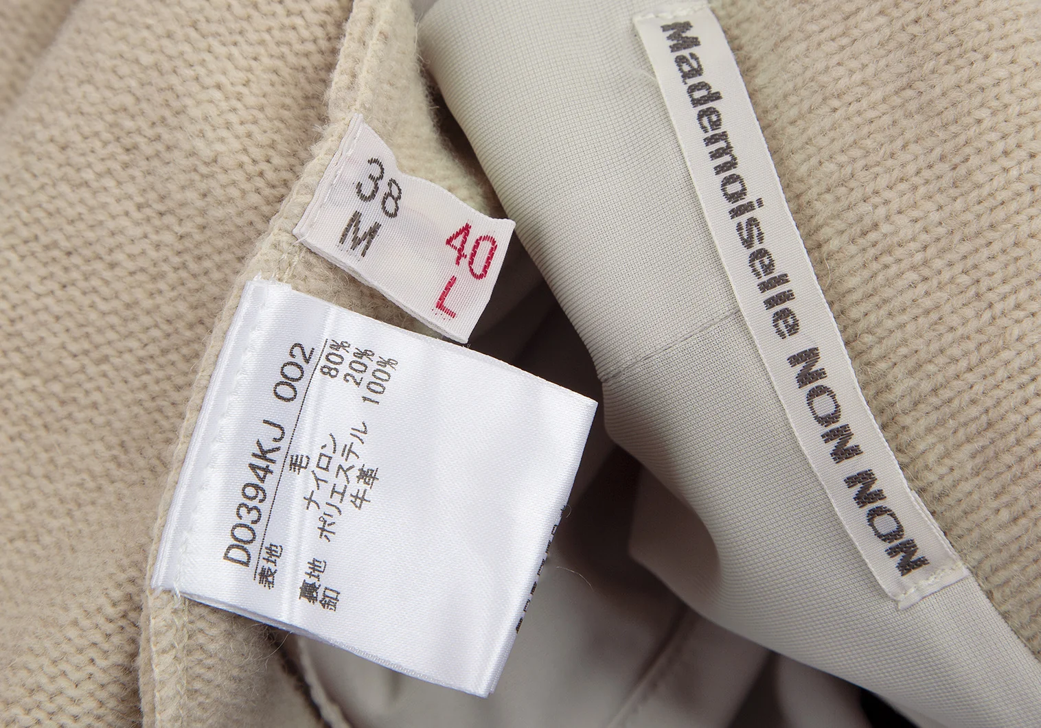 マドモアゼルノンノンMademoiselle NON NON ウールナイロンロゴワッペンニットジャケット ベージュ40L