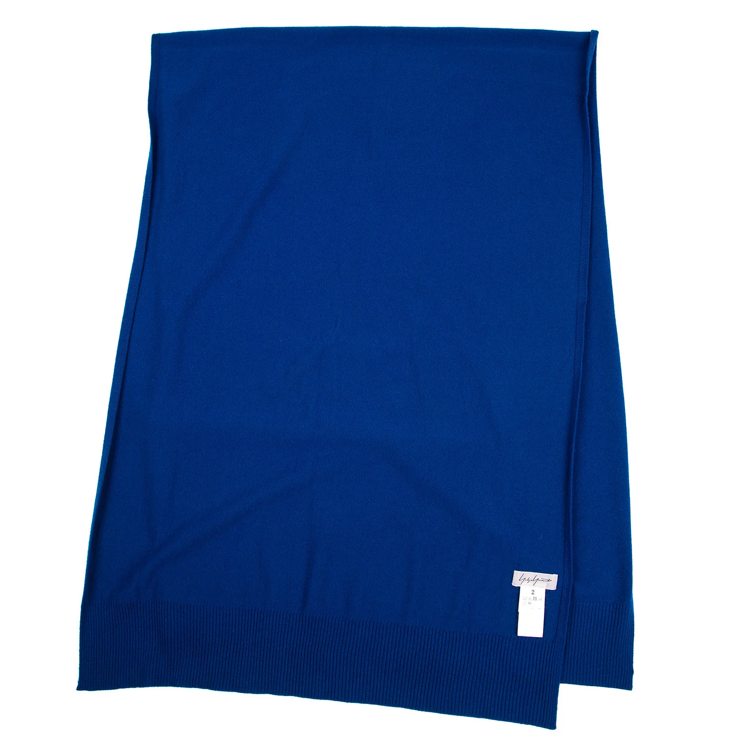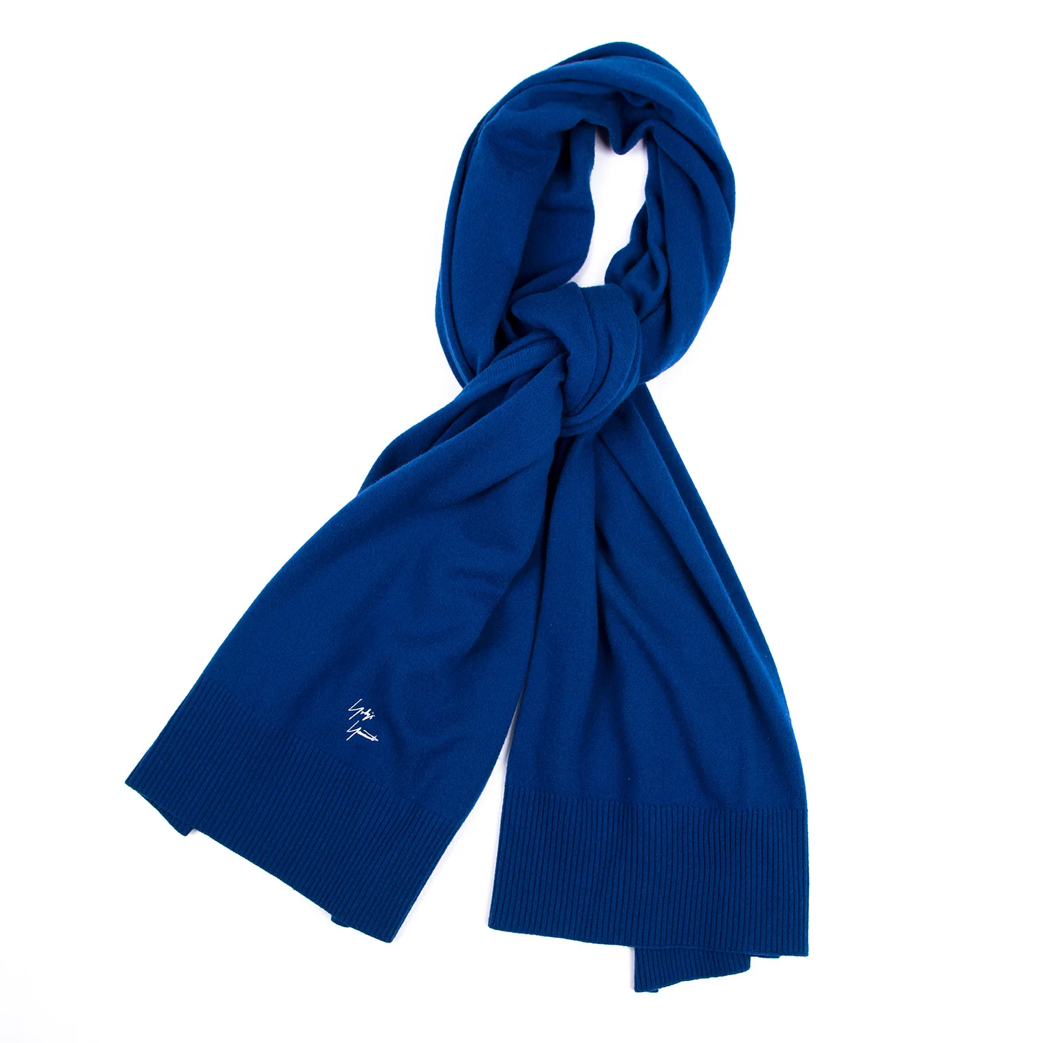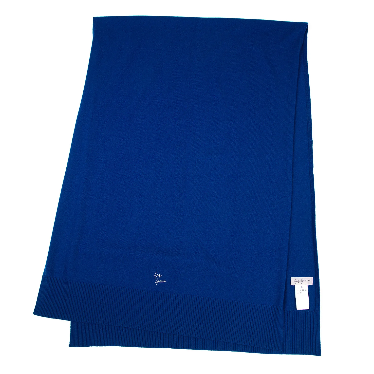 ヨウジヤマモト ファムYohji Yamamoto FEMME カシミヤワンポイントロゴ刺繍ロングリブストール 青2