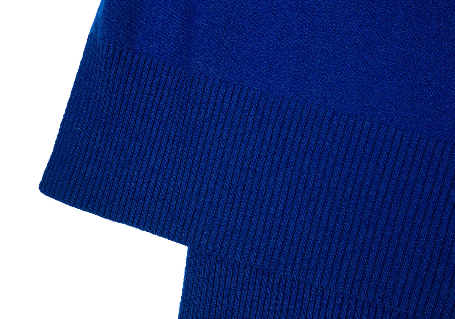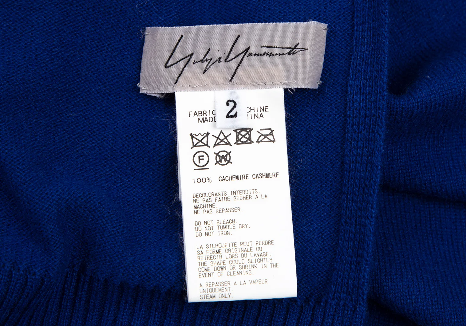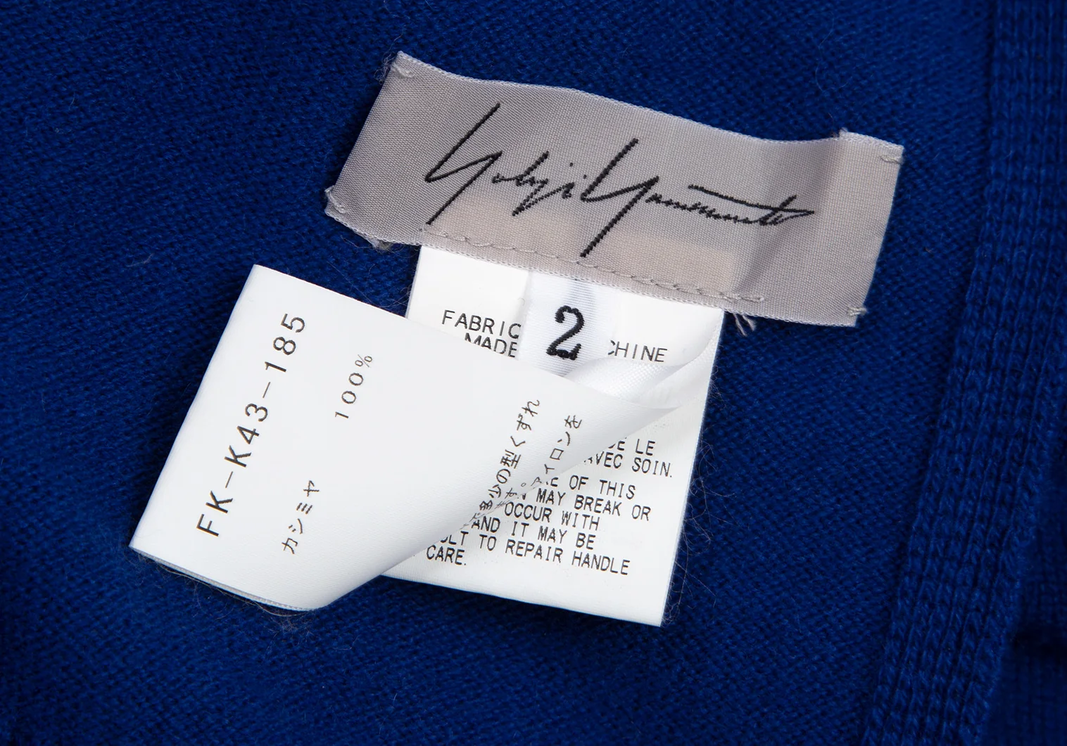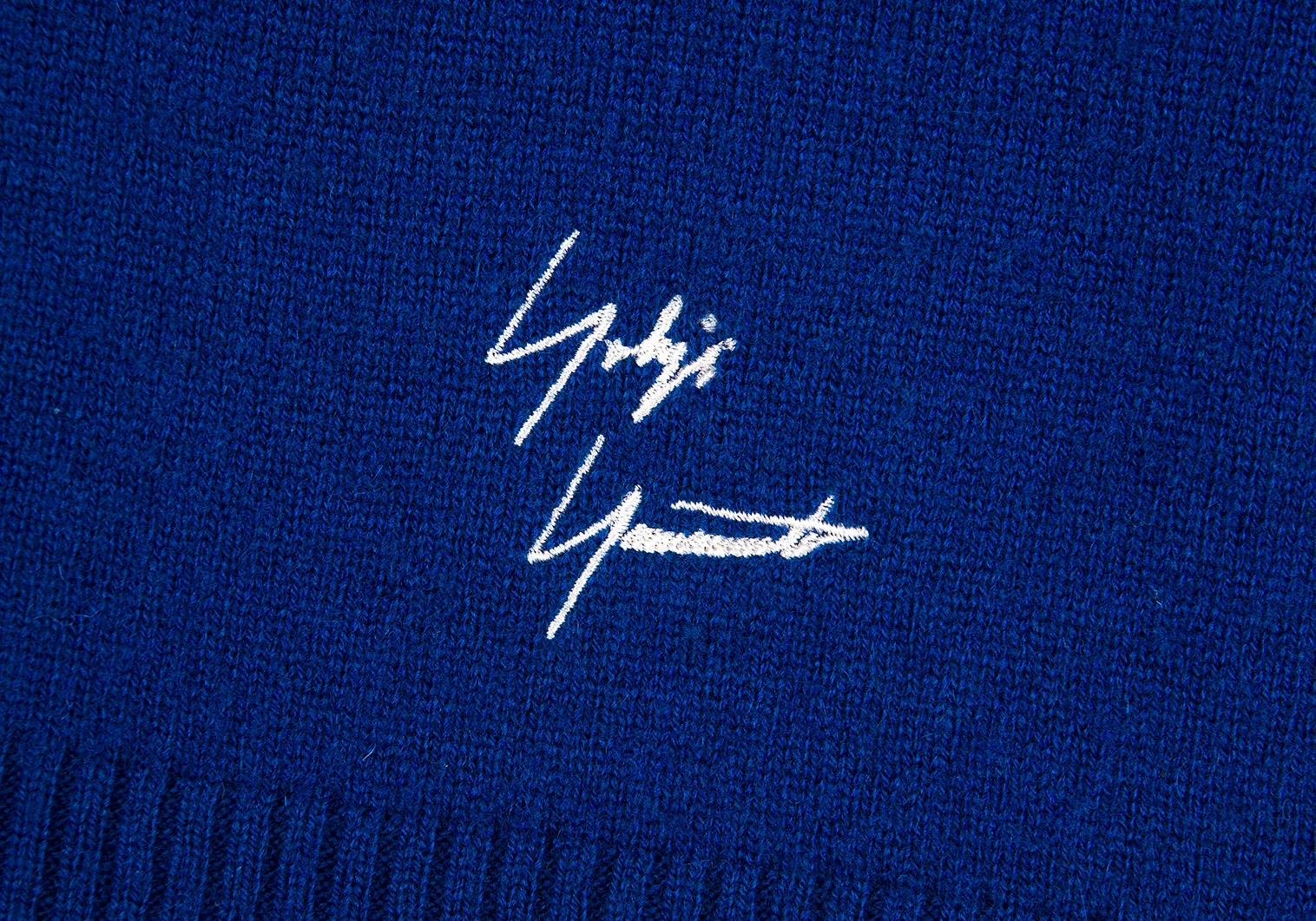ヨウジヤマモト ファムYohji Yamamoto FEMME カシミヤワンポイントロゴ刺繍ロングリブストール 青2