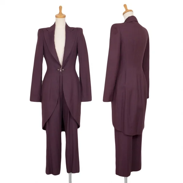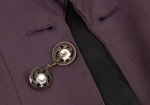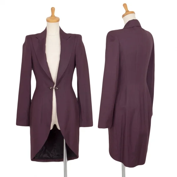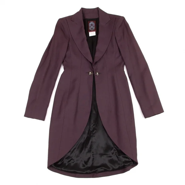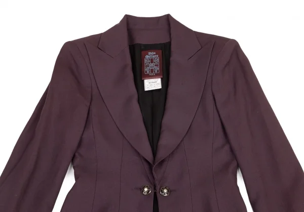 ジョンガリアーノJohn Galliano リネン混ピークドラペルロングジャケット 紫38