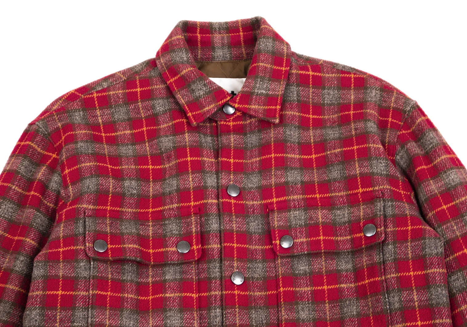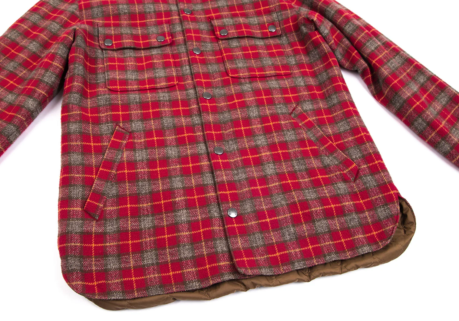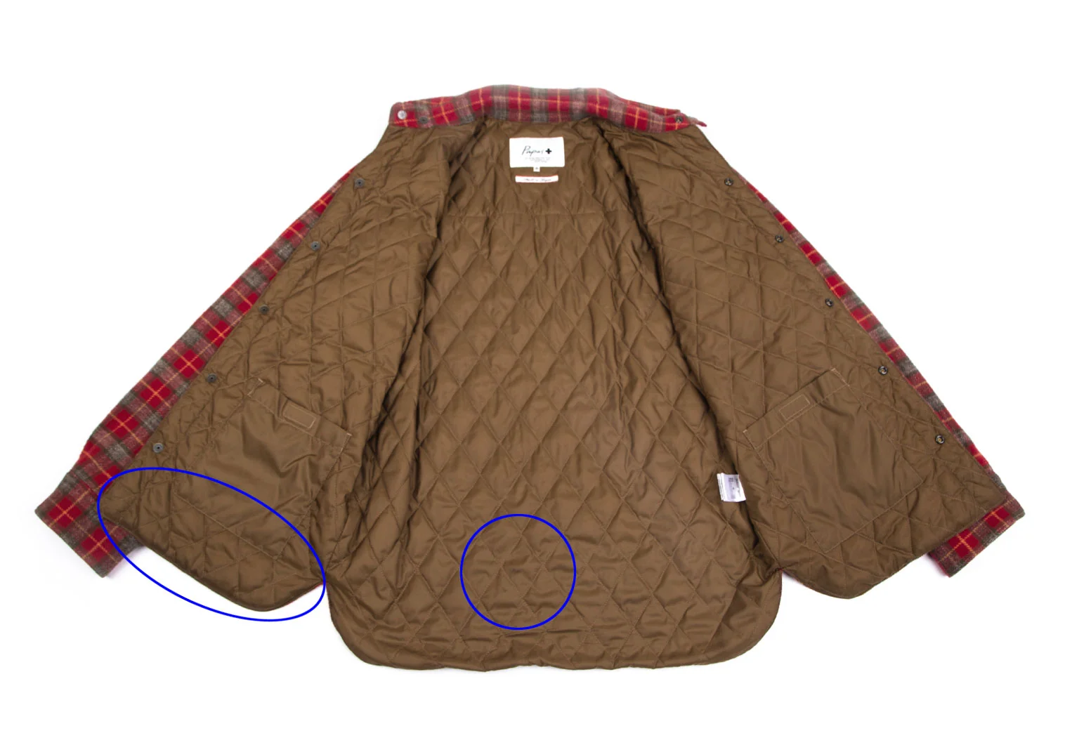 パパスプラスPapas+ 中綿キルティングチェックネルシャツジャケット 赤他M