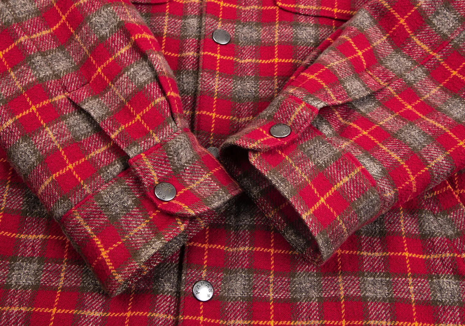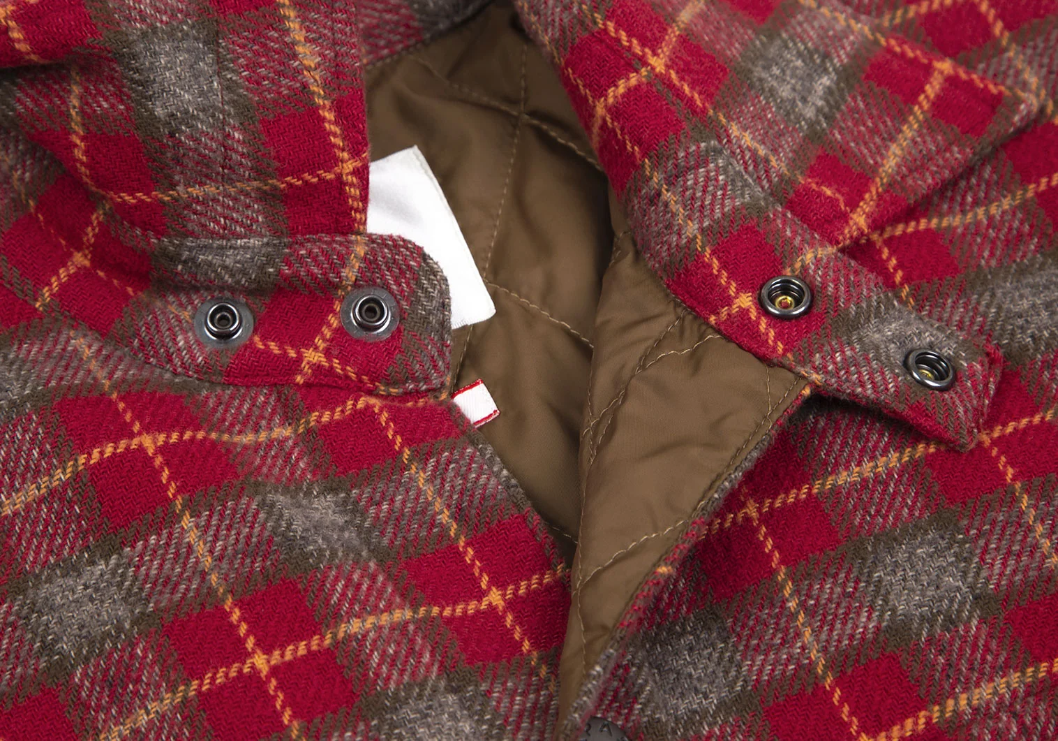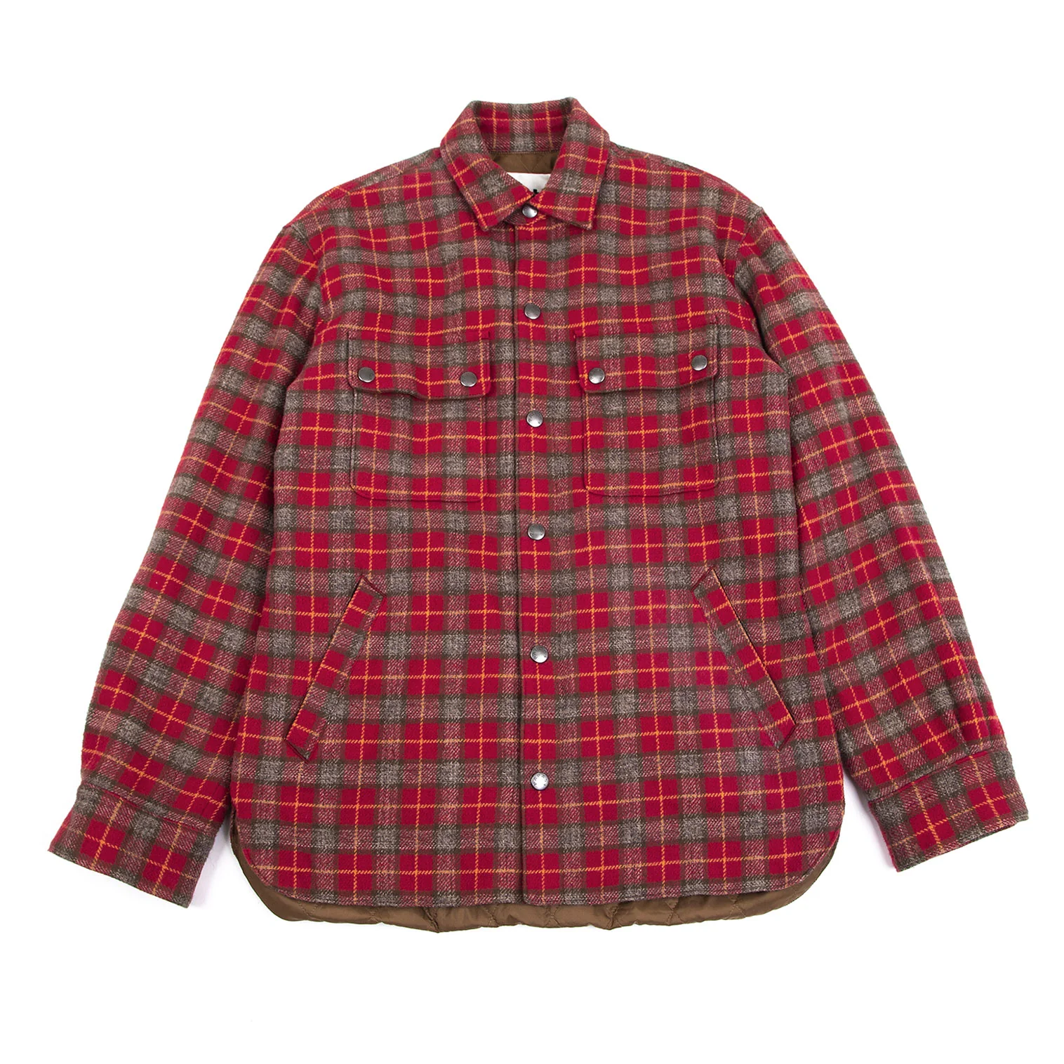 パパスプラスPapas+ 中綿キルティングチェックネルシャツジャケット 赤他M