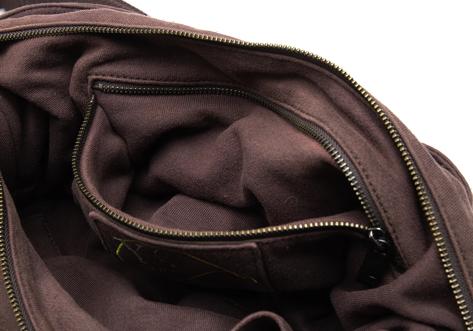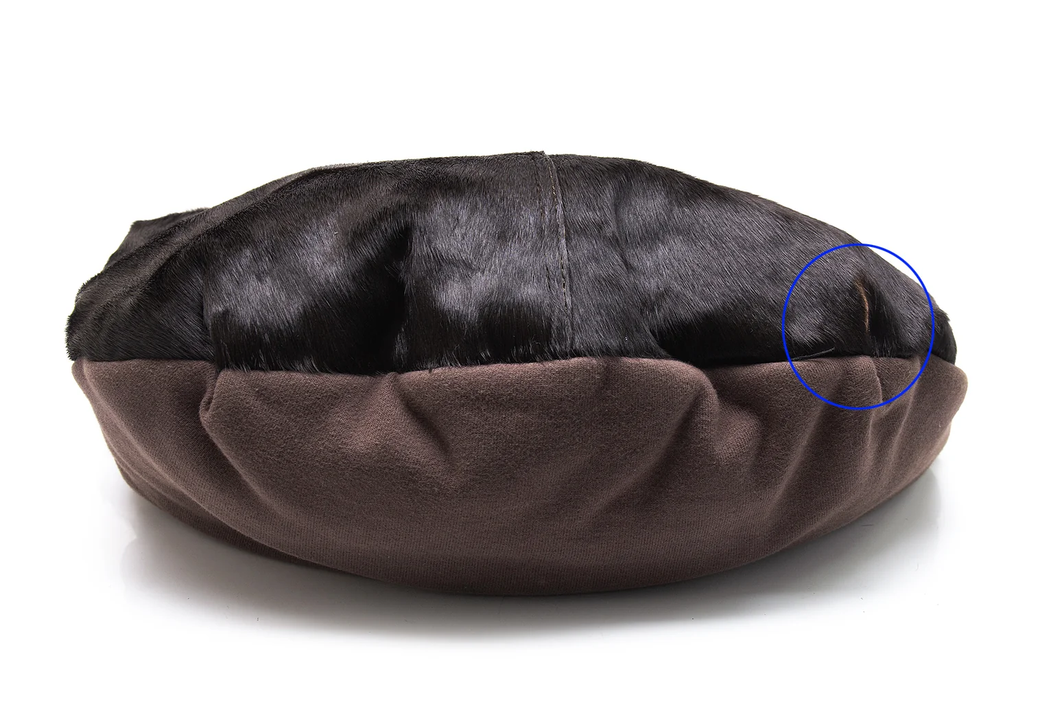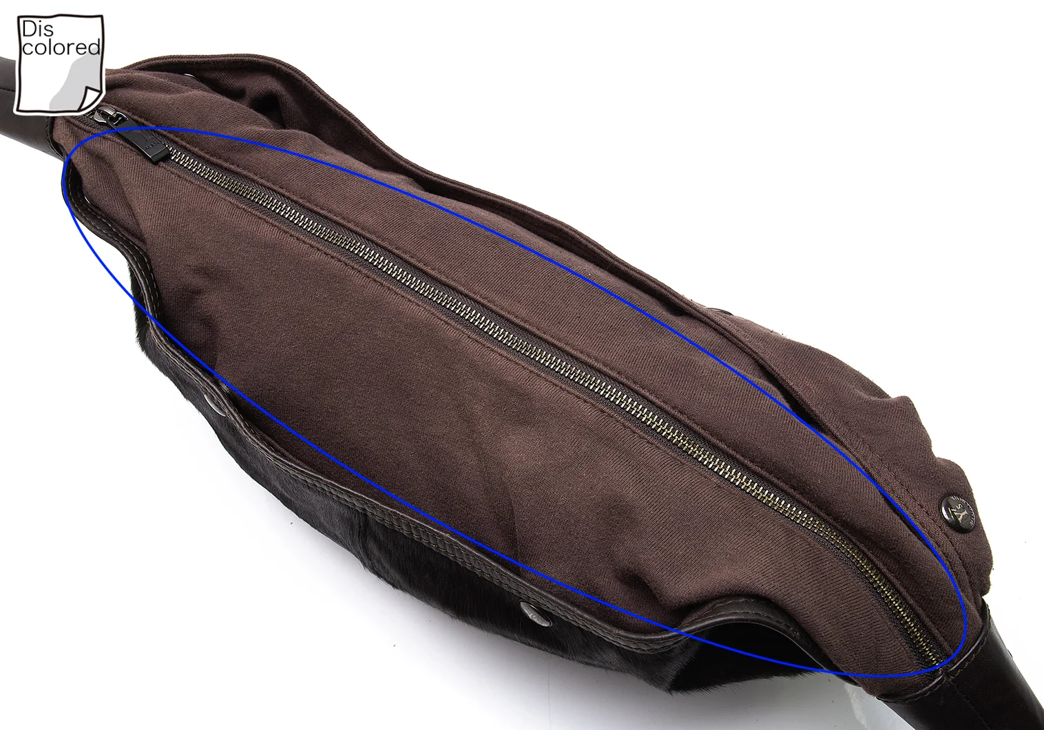 内側オープンポケット1つ、ジップポケット1つあります。ハラコ毛抜け、スウェット部分色褪せがあります(写真参照)。その他目立ったシミ、汚れはありません。