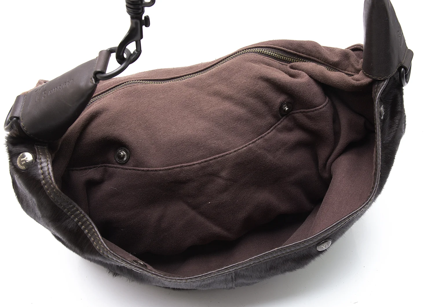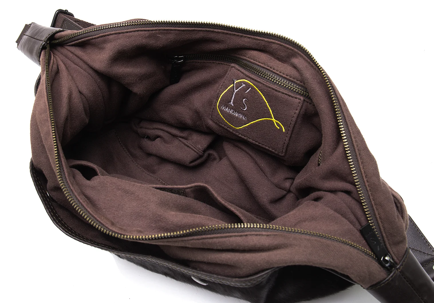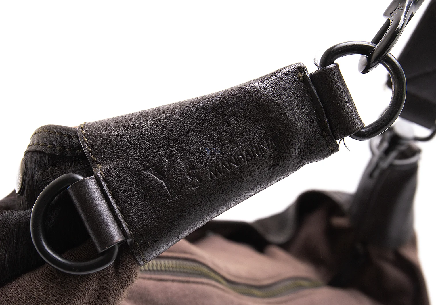ワイズ×マンダリーナ Y’s×MANDARINA ハラコ切替スウェット地ショルダーバッグ 茶