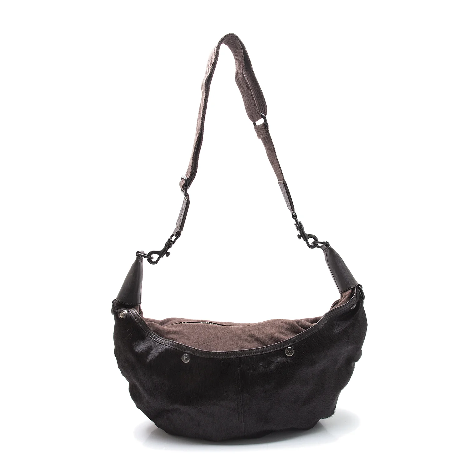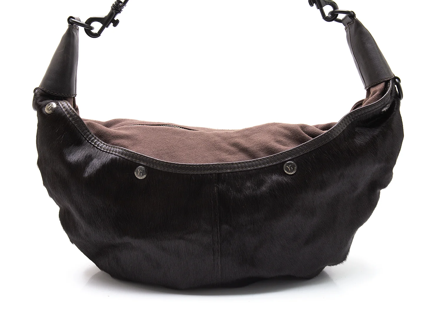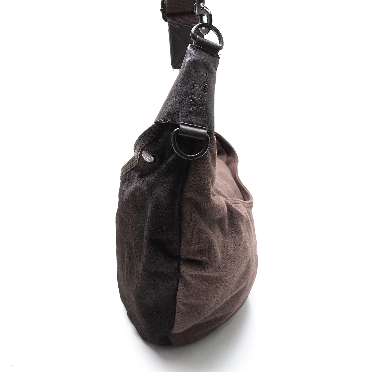 ワイズ×マンダリーナ Y’s×MANDARINA ハラコ切替スウェット地ショルダーバッグ 茶