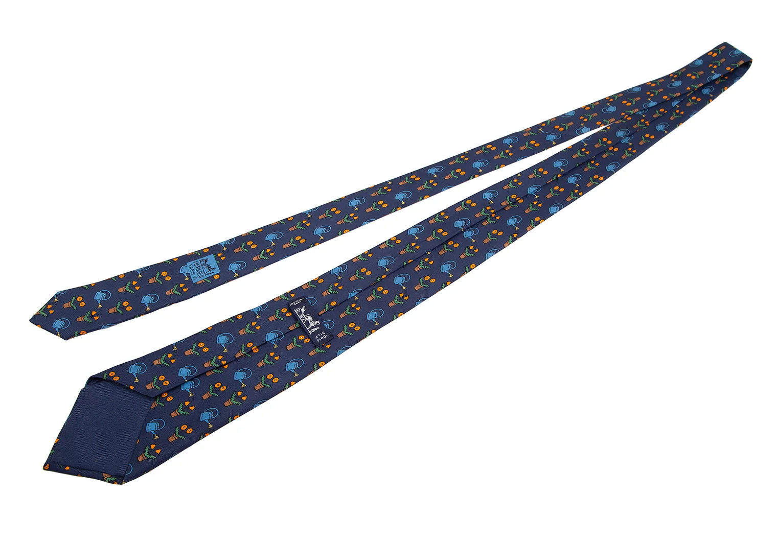 エルメスHERMES ガーデニング総柄シルクネクタイ 紺