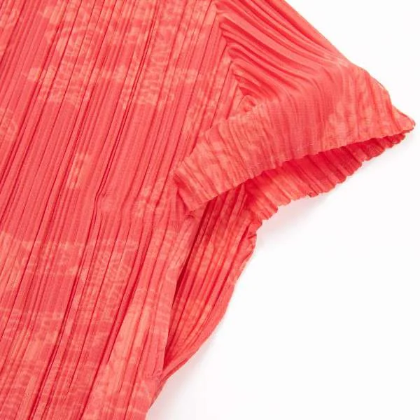 プリーツプリーズPLEATS PLEASE プリーツフレンチスリーブ柄カットソー オレンジ3