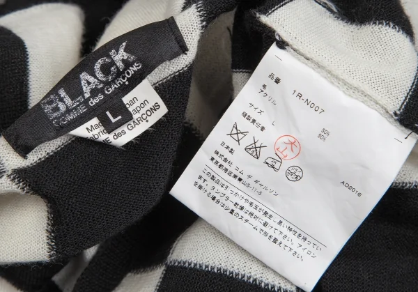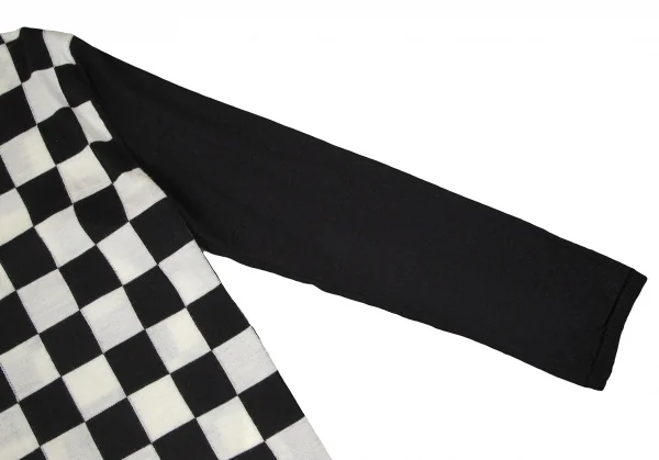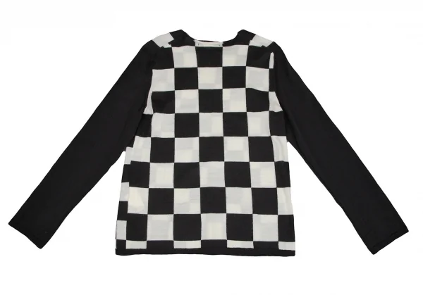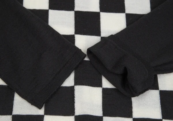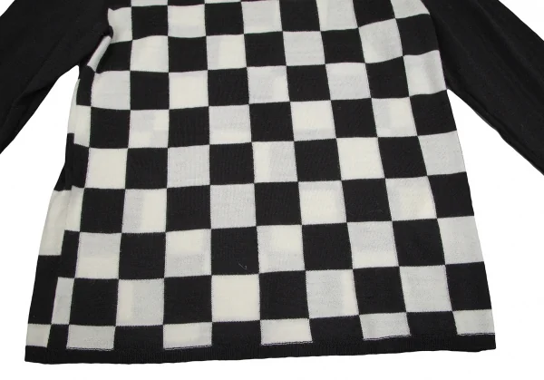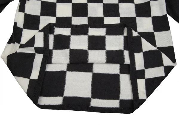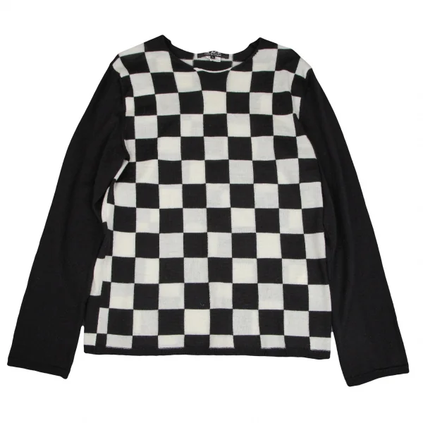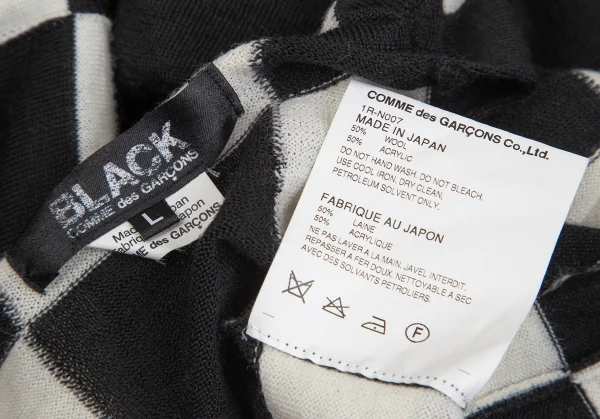 ブラックコムデギャルソンBLACK COMME des GARCONS ウールアクリルチェッカーフラックニットソー 黒白L