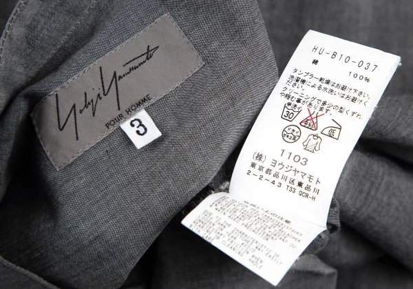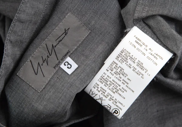 ヨウジヤマモト プールオムYohji Yamamoto POUR HOMME コットンスタンドカラースリットシャツ グレー3